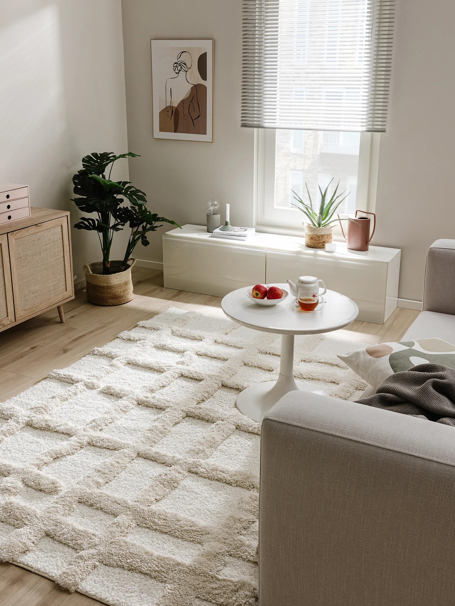 Tapis design motif à carreaux crème 160x230 cm