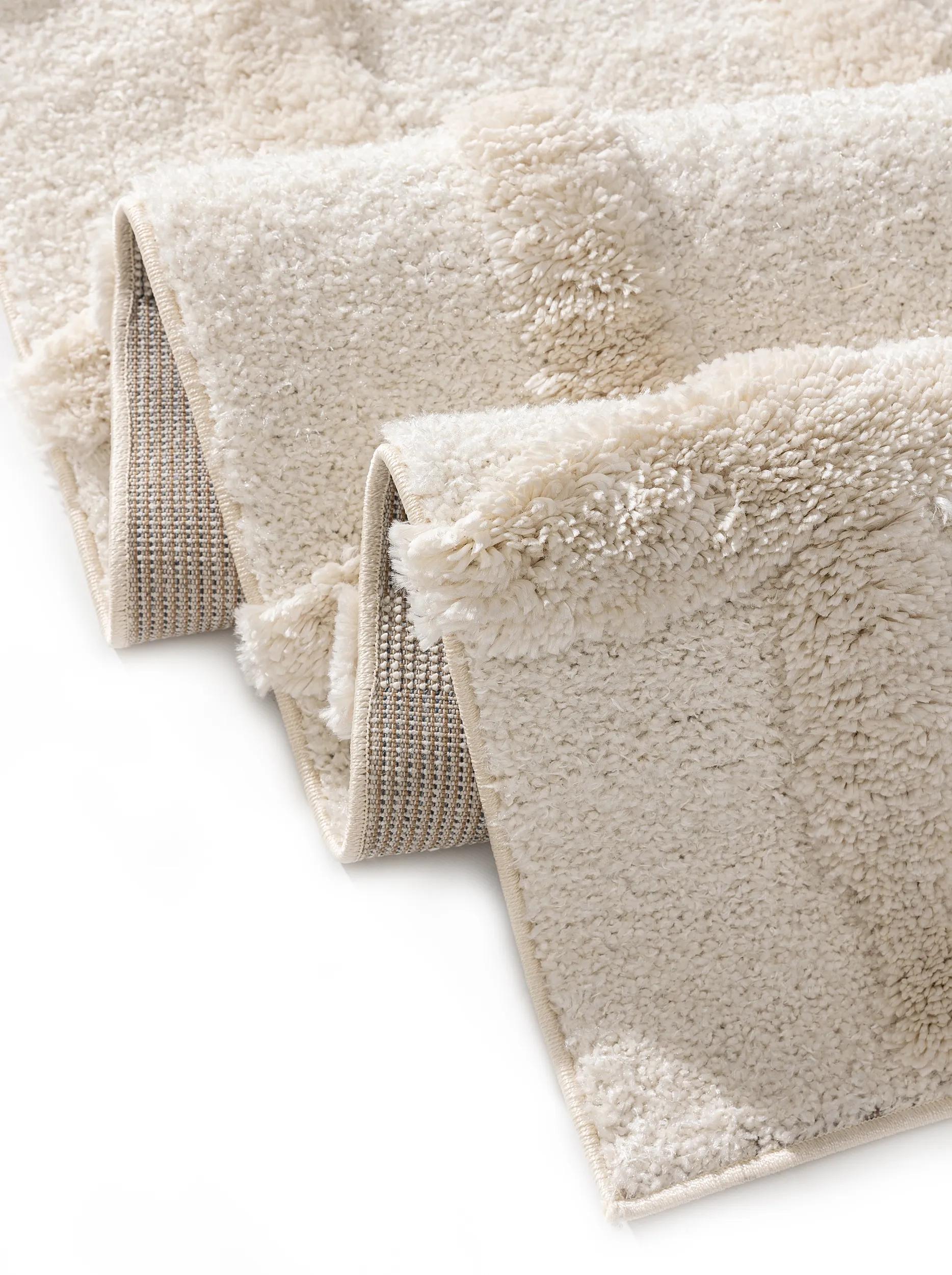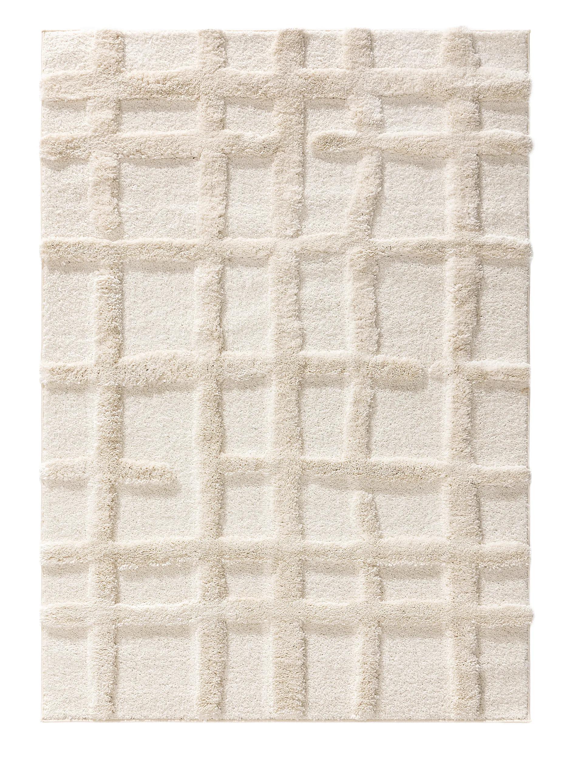 Sculpté comme une œuvre, ce tapis incarne une conception artistique où le design dialogue avec un motif à carreaux en nuances délicates de crème, sa présence se déployant dans un format généreux de 200x290 cm. La pièce révèle un travail des formes attentif, mariant géométrie adoucie et lignes nettes pour créer un impact visuel immédiat, et instillant une modernité élégante sans emphase ni superflu.