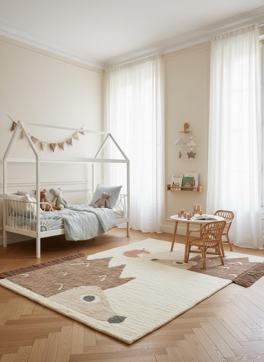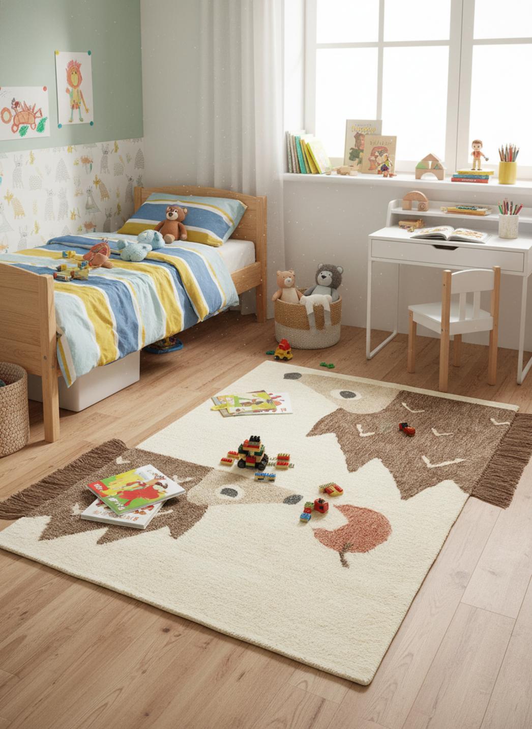 Imaginez une scène du soir où la lumière douce glisse sur le sol et invite à s'asseoir pour lire une histoire: ce tapis devient le cœur chaleureux du coin lecture, offrant une surface accueillante qui rassure autant qu'elle émerveille. Sa texture en laine caresse les petits pieds nus, apportant une chaleur immédiate et un amorti moelleux qui transforme les instants de jeu en moments de confort sécurisé.