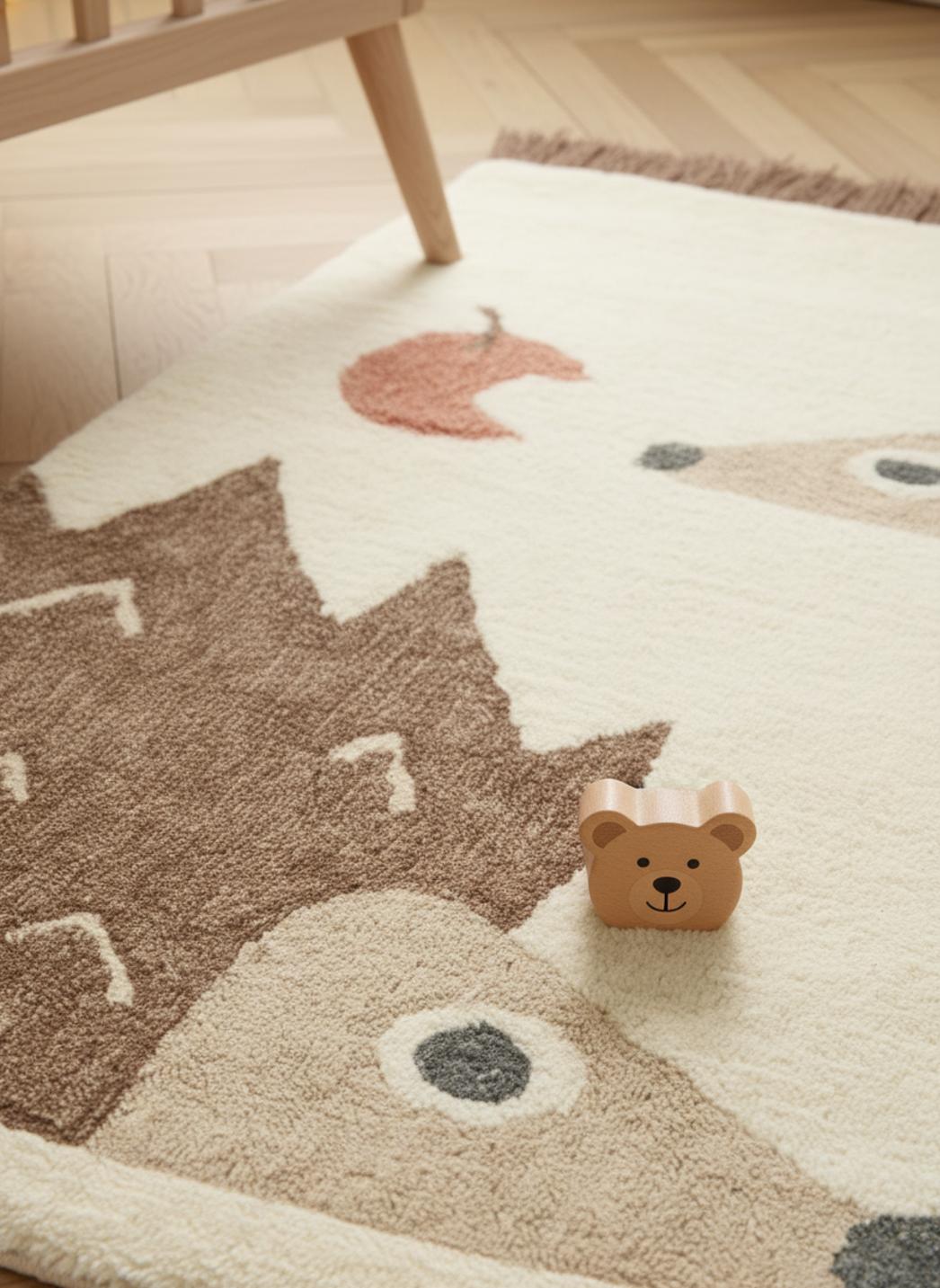 Dans un décor où mobile en bois et veilleuse tamisée cohabitent, le motif ludique déroule un univers où la nature entre dans la chambre. Un petit animal familier, le hérisson, invite à l'exploration et stimule l'imagination: cache-cache sous un coussin, construction de tours de blocs ou premières découvertes à quatre pattes deviennent des rituels apaisés, posés sur une surface stable et antidérapante.