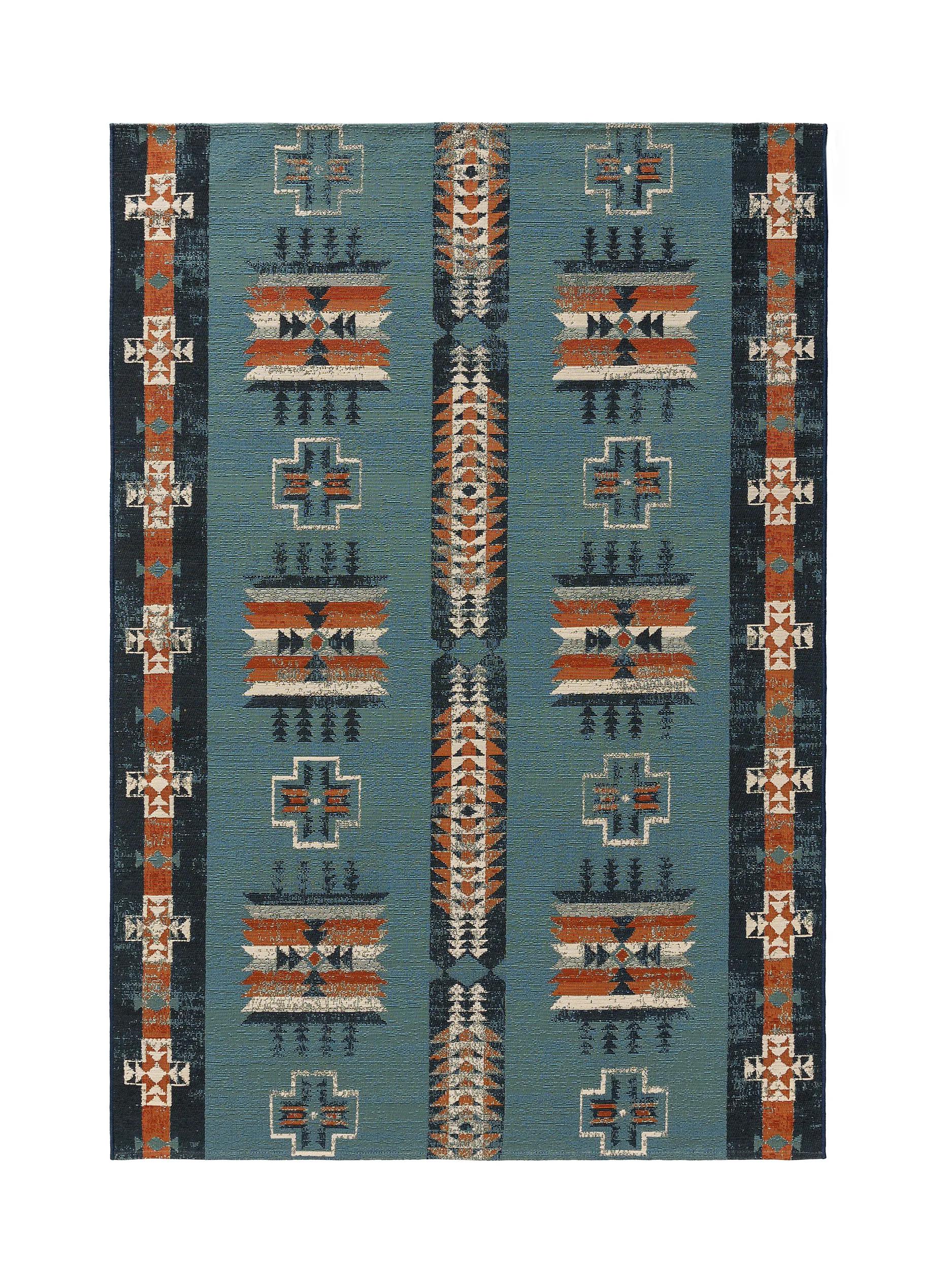 Tapis ethnique bleu et multicolore d'intérieur et d'extérieur 80x165 cm