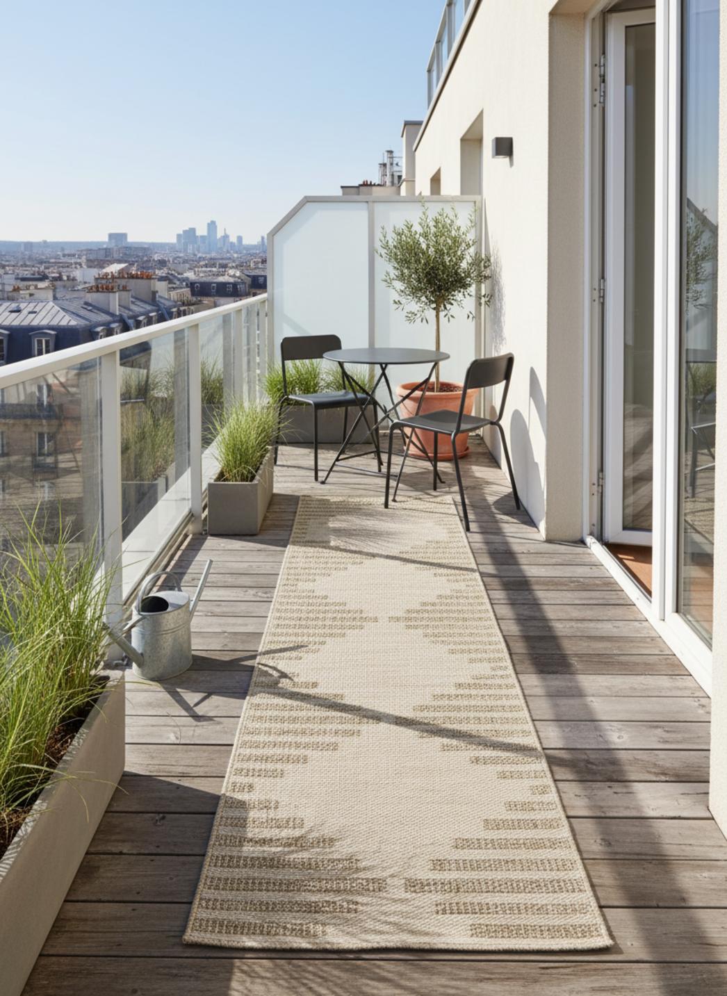 Ce tapis ethnique de couloir en marron naturel évoque la chaleur de la terre et l’authenticité des décors d’ailleurs. Dans son format long de 80x240 cm, il guide le pas avec élégance le long d’une terrasse, d’une allée ou d’un balcon, tout en apportant une dimension décorative affirmée. Ses motifs inspirés de l’artisanat traditionnel rythment l’espace de formes subtiles, créant un contraste harmonieux entre structure et douceur. Le marron naturel, profond et apaisant, s’accorde parfaitement aux matières brutes — bois, rotin, pierre — et aux végétaux environnants, pour une ambiance chaleureuse et organique. Ce tapis d’extérieur devient une ligne de caractère au cœur du décor, reliant les zones de vie avec fluidité et naturel. Il incarne l’esprit du voyage et du confort, transformant un simple couloir en passage inspirant, où la texture et la couleur se mêlent à la lumière pour créer une atmosphère à la fois vivante et apaisée.