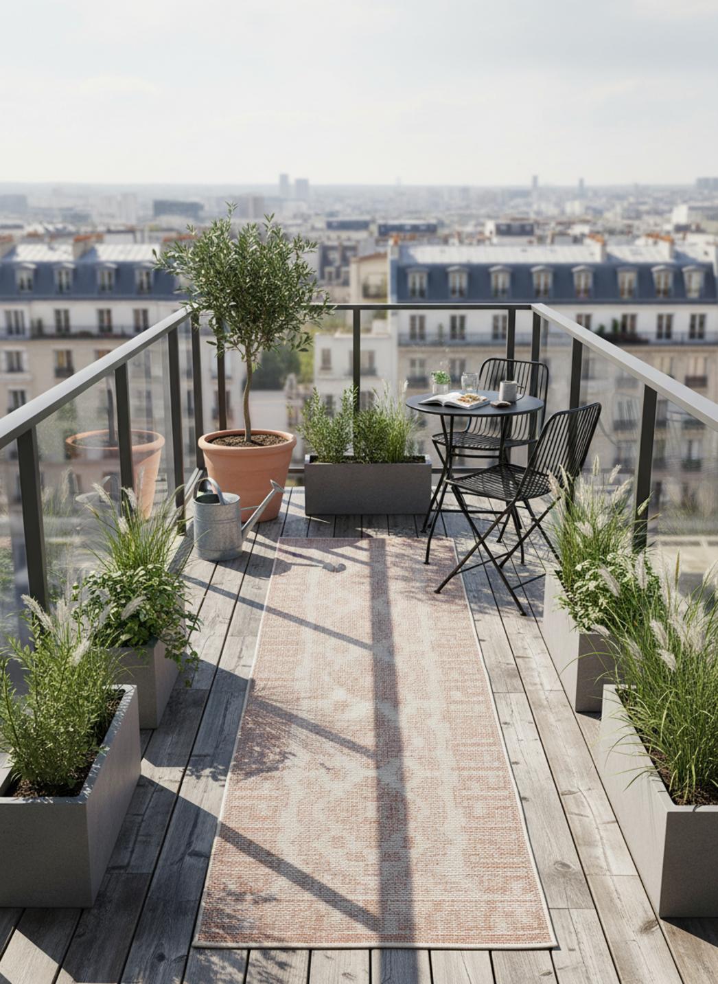 Le long d’un couloir ou sur un balcon ensoleillé, le tapis ethnique terracotta déploie une chaleur douce et authentique. Son motif d’inspiration artisanale, à la fois discret et rythmé, évoque les tissages traditionnels tout en conservant une allure contemporaine. La teinte terracotta, profonde et lumineuse, réchauffe instantanément l’espace et s’accorde naturellement aux matières brutes comme le bois ou la pierre. En format 80x250 cm, il accompagne la circulation avec fluidité et structure les passages d’une note chaleureuse. Ce modèle incarne la beauté naturelle de la collection de tapis d’extérieur, où les couleurs de la terre et les motifs ethniques se fondent dans une harmonie apaisante. Sa texture tissée à plat capte les reflets du jour et révèle la richesse du tissage au fil du regard. On retrouve cette même ambiance solaire et équilibrée dans la sélection de tapis de balcon, parfaite pour sublimer les espaces étroits d’une touche naturelle et vivante. Un tapis qui réchauffe le passage et transforme chaque pas en invitation à la douceur.