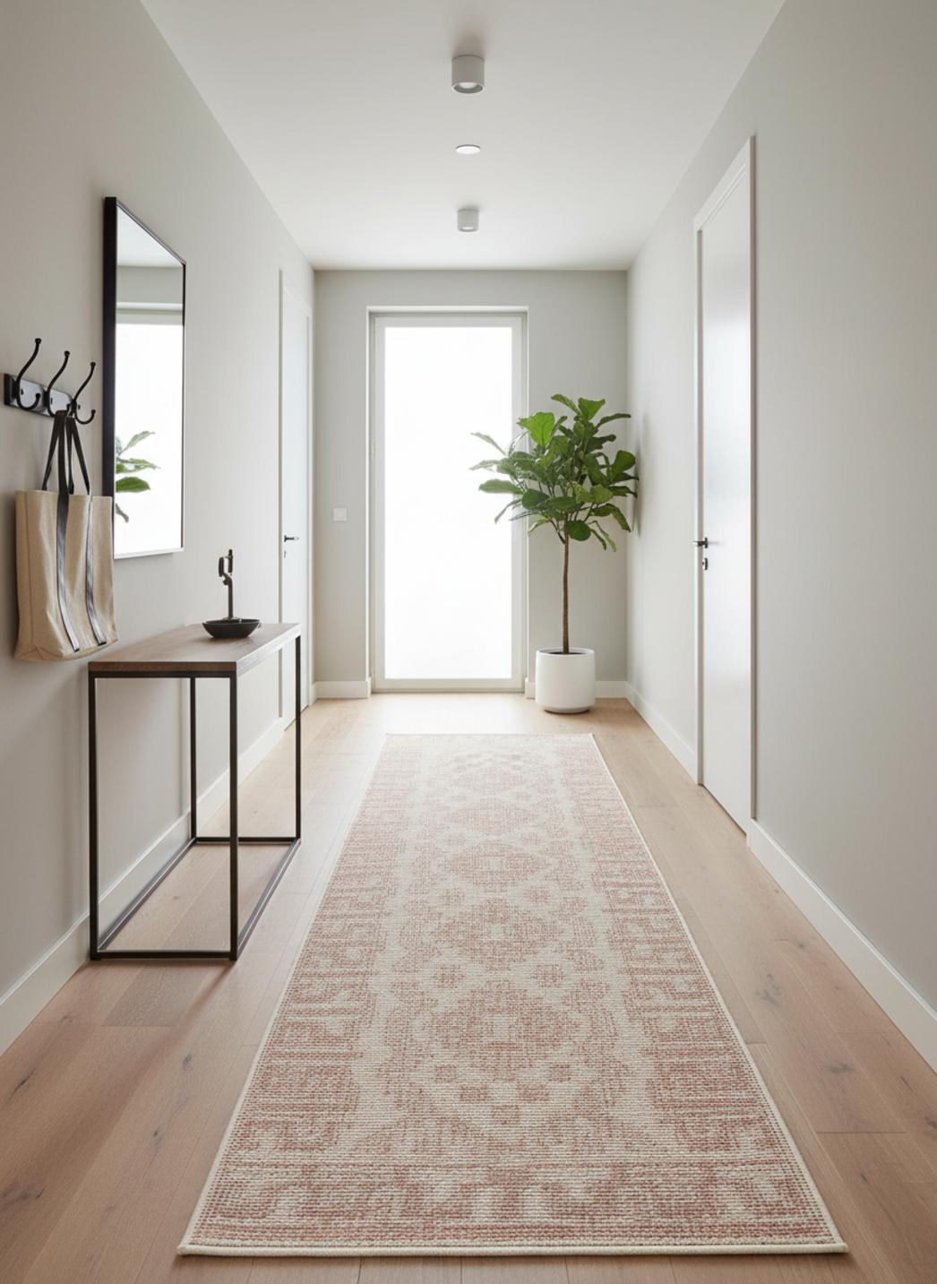Tapis ethnique de couloir terracotta d'intérieur et d'extérieur 80x250 cm