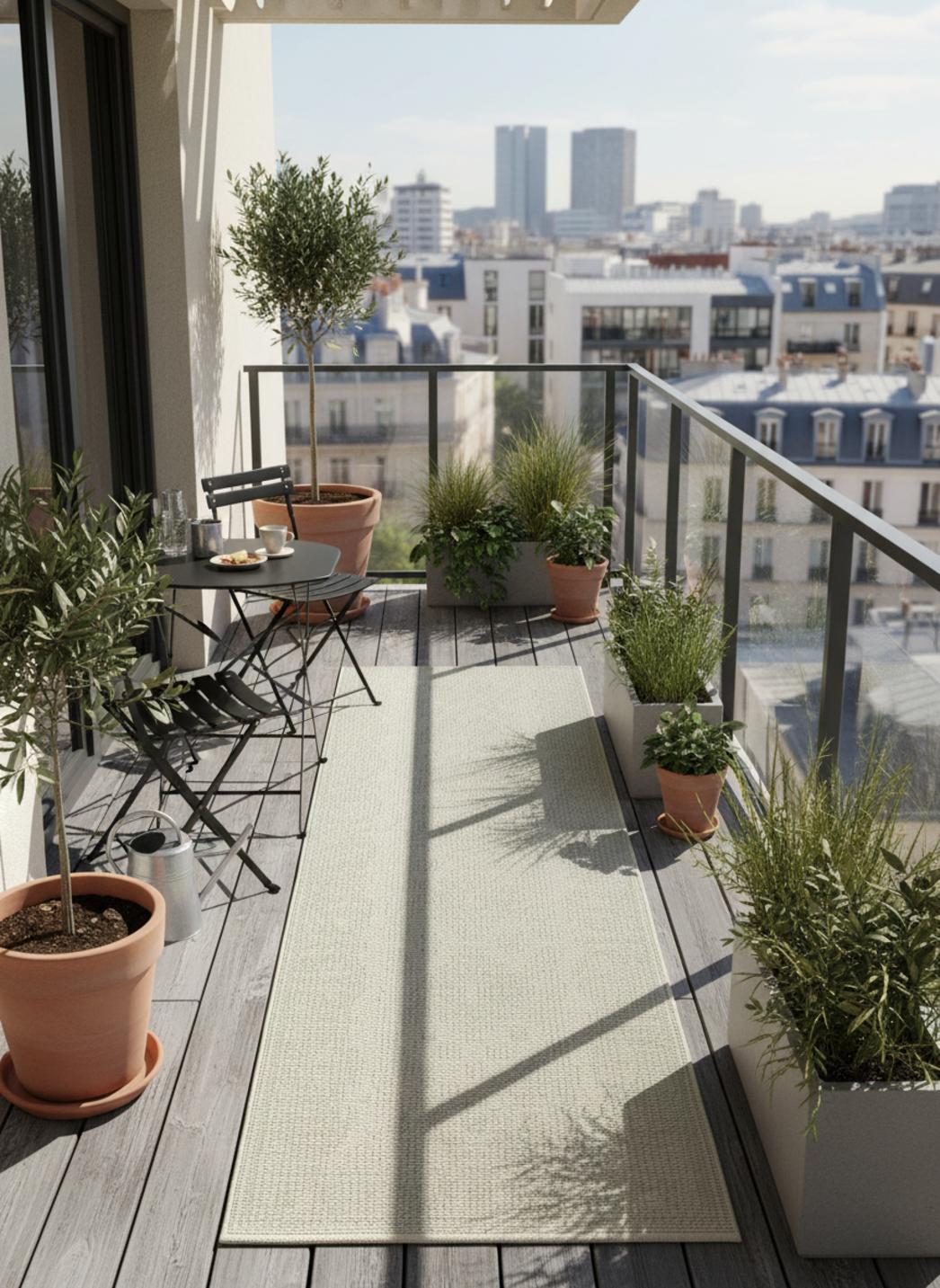 Ce tapis ethnique séduit par la richesse de son motif et la subtilité de ses nuances vert et gris, qui évoquent la nature et la pierre dans un parfait équilibre. Ses dessins géométriques, inspirés des tissages traditionnels, structurent le sol tout en apportant une touche artisanale et authentique. Long et élancé, il guide le regard et adoucit la perspective d’un balcon, d’un couloir extérieur ou d’une allée de terrasse. Son format de 80x250 cm permet de relier les espaces avec fluidité, tout en créant un chemin visuel élégant et harmonieux. Le vert, apaisant et frais, se marie au gris pour offrir une palette naturelle et contemporaine, idéale pour les extérieurs végétalisés ou minéraux. Sa texture douce et stable sous les pas rend la circulation agréable et confortable. Ce modèle trouve naturellement sa place dans la collection de tapis d’extérieur, dédiée aux espaces à vivre en plein air. À harmoniser avec nos tapis de balcon pour une continuité visuelle et stylistique. Un tapis de passage élégant et plein de caractère, qui relie les matières et les couleurs avec naturel.
