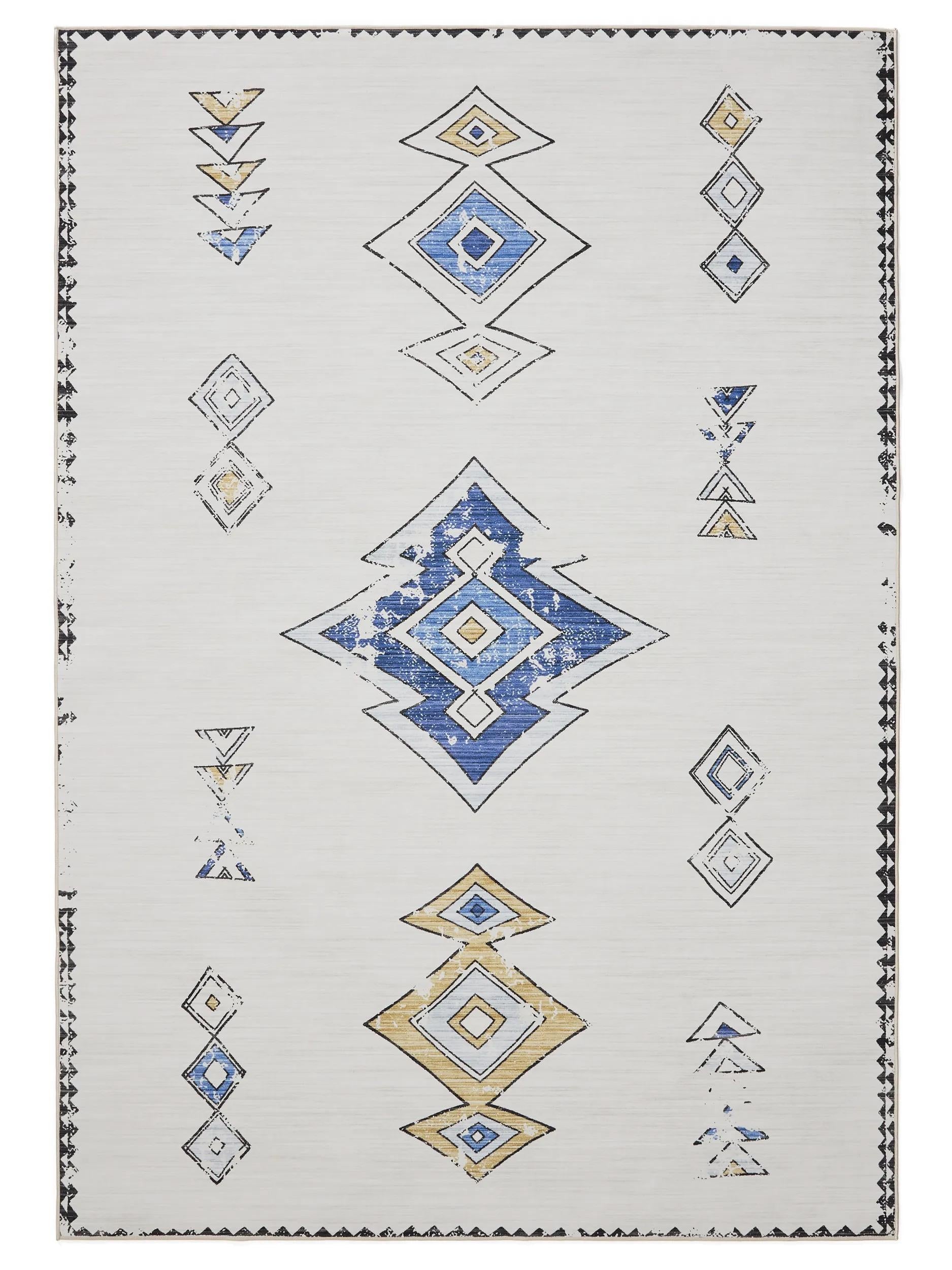 Tapis ethnique inspiration berbère beige et bleu lavable 300x400 cm