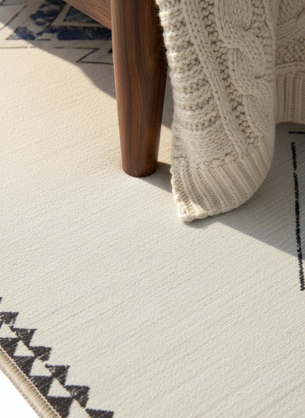 Au cœur d’un intérieur qui respire la simplicité chaleureuse, ce tapis reprend l’esprit berbère pour offrir une présence douce et contemporaine, comme un souffle de lumière posé sur le sol.