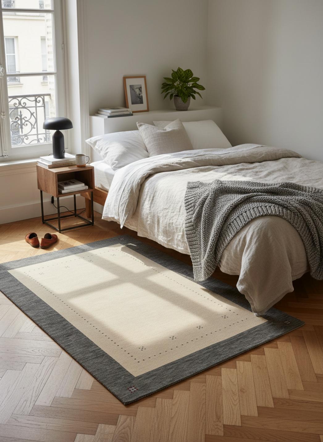 Autour, les matériaux naturels reprennent le dialogue — bois patiné, lin froissé, panier en rotin — et la lumière tamisée met en valeur les nuances de beige et de gris qui se répondent. Dans une chambre, il devient une promesse de douceur au réveil ; dans un salon bohème, il invite aux longues conversations et aux moments partagés, créant une atmosphère intime et chaleureuse.