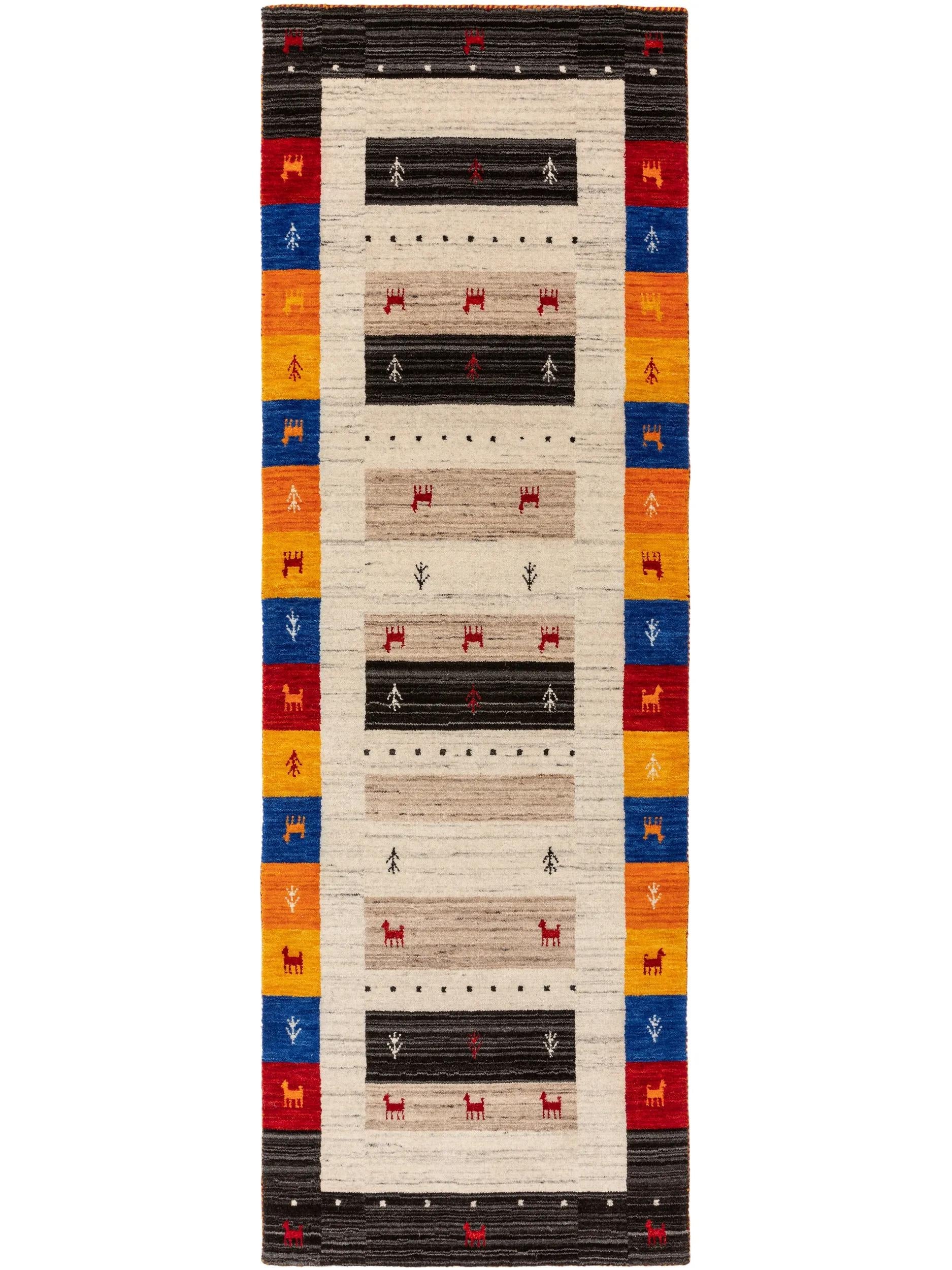 Tapis ethnique inspiration berbère descente de lit multicolore en laine 80x250 cm