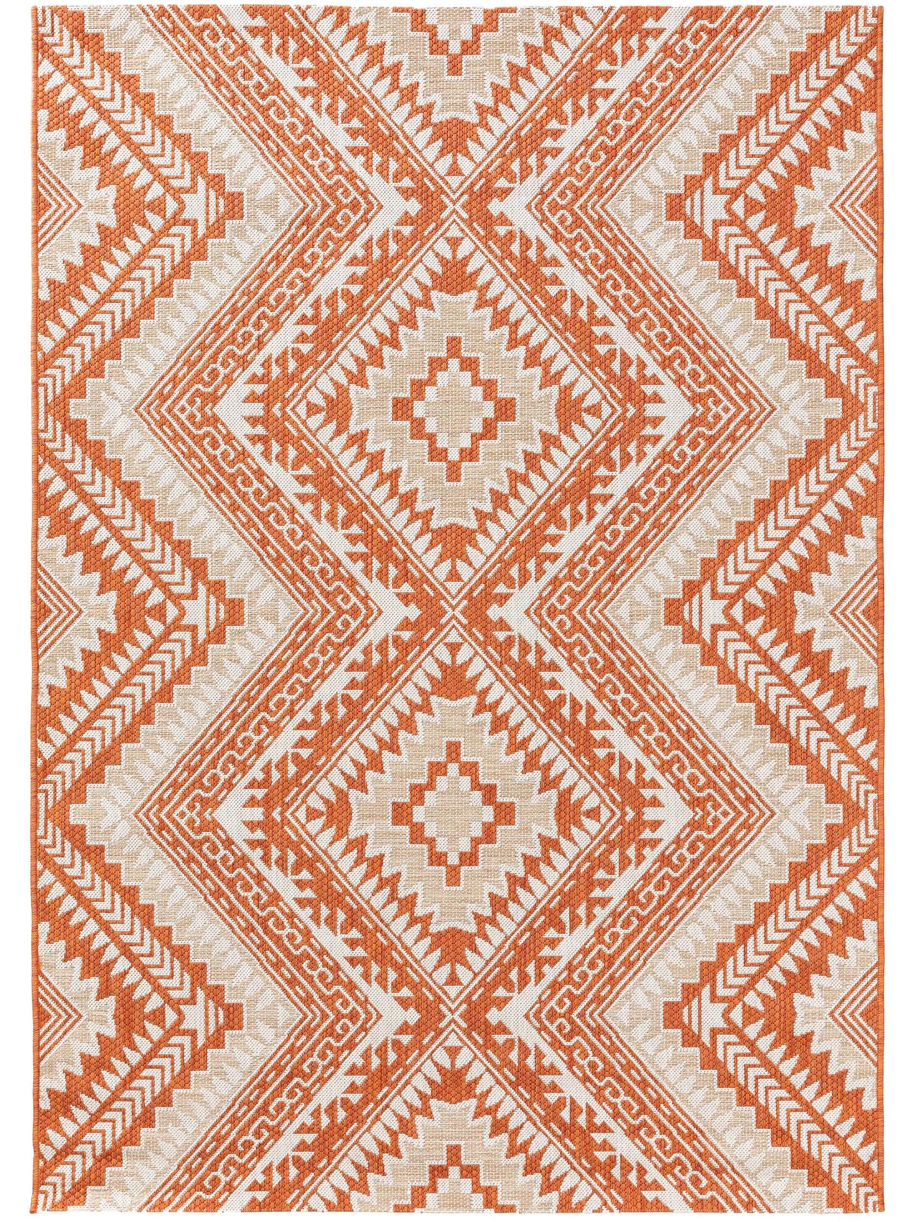 Tapis ethnique motif aztèque orange et crème d'intérieur et d'extérieur 80x150 cm
