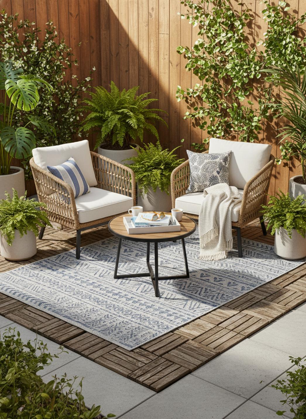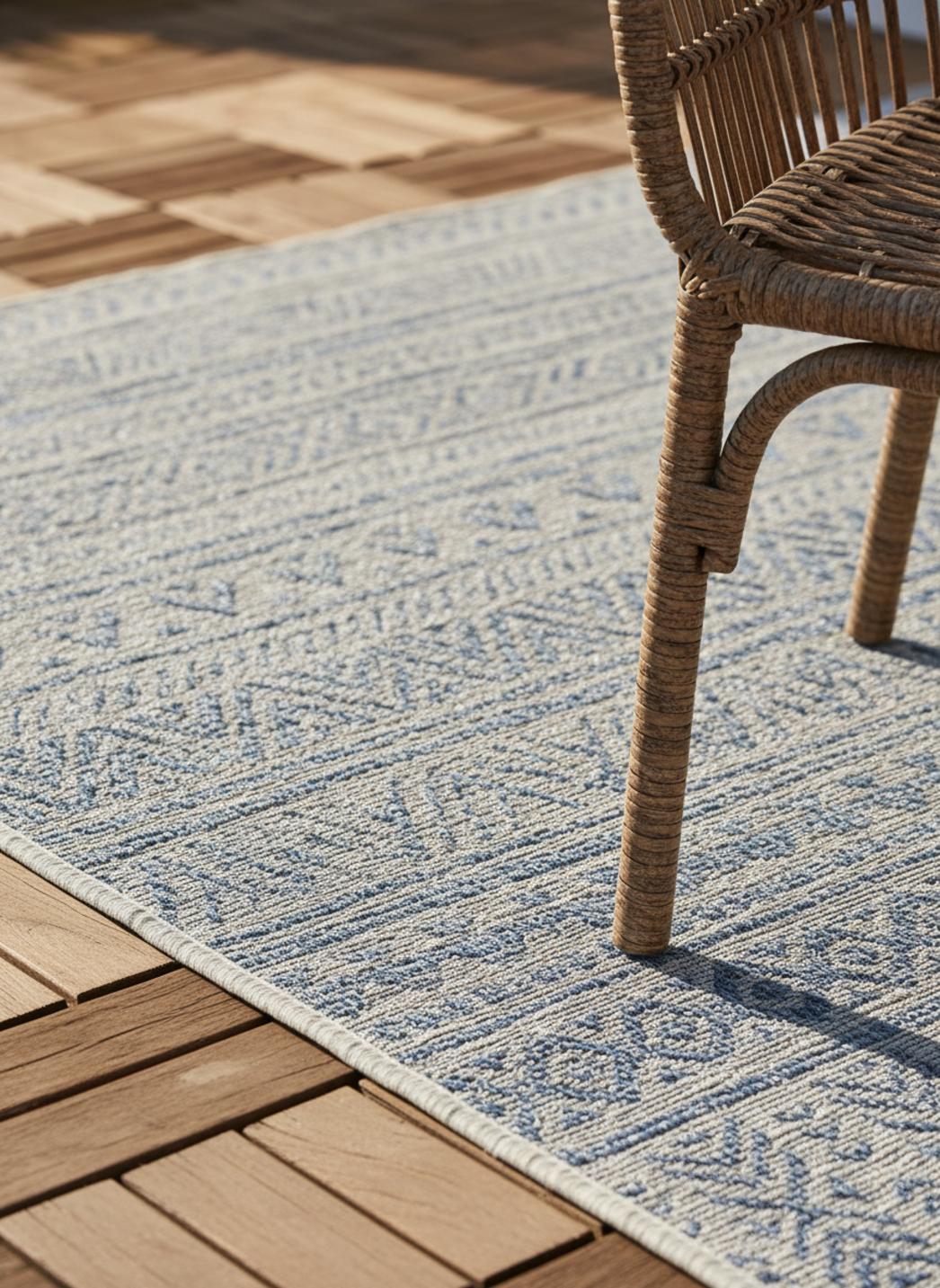 Chic et équilibré, ce tapis au style ethnique séduit par son motif géométrique et la combinaison apaisante de ses tons bleu et gris. Dans un format de 80x150 cm, il trouve sa place sur une terrasse, un balcon ou un petit patio, apportant une touche d’élégance naturelle et de modernité à la décoration extérieure. Ses formes géométriques, inspirées des tissages artisanaux, créent un jeu visuel subtil qui dynamise l’espace tout en conservant une belle harmonie. Le bleu, symbole de calme et de fraîcheur, s’accorde parfaitement au gris, ton neutre et raffiné, pour composer une palette douce et contemporaine. Ce tapis se marie aisément avec les matériaux bruts comme le bois, la pierre ou le rotin, et s’intègre dans des ambiances bohèmes, naturelles ou modernes. Placé sous une petite table ou dans un coin détente, il apporte structure et équilibre à l’espace. Véritable alliance entre tradition et modernité, il transforme les extérieurs en lieux sereins, élégants et accueillants.