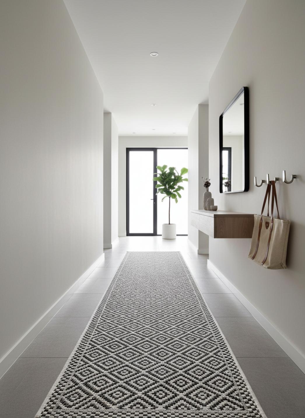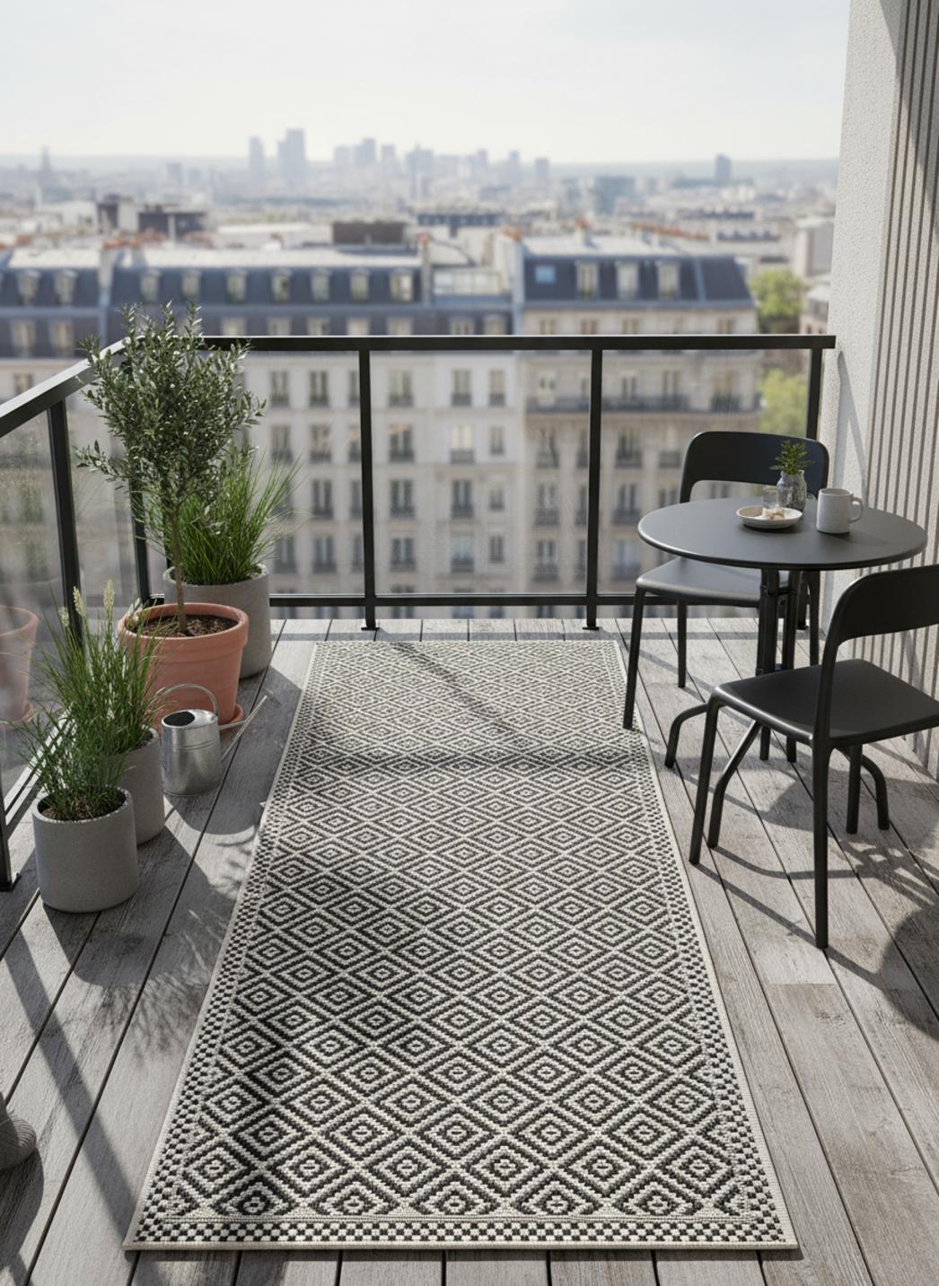 Vibrant de contrastes et de caractère, ce tapis ethnique au motif géométrique blanc et noir transforme un simple couloir en un espace dynamique et élégant. Ses motifs audacieux, inspirés des tissages traditionnels, créent un jeu visuel qui capte le regard tout en conservant une simplicité raffinée. Idéal pour un passage de terrasse ou un balcon, il structure l’espace tout en apportant une touche moderne et chaleureuse. Le blanc, lumineux et pur, s’allie au noir pour donner profondeur et intensité, évoquant l’équilibre entre lumière et ombre. Ce tapis de couloir d’extérieur de 80x240 cm s’adapte parfaitement aux espaces restreints, offrant un contraste frappant sans surcharger le décor. Les formes géométriques, nettes et régulières, apportent rythme et fluidité, idéales pour allonger et structurer les zones de passage. Sous la lumière du jour, les reflets de chaque couleur se révèlent, apportant un éclat saisissant à l’ensemble. À la tombée du soir, le tapis enveloppe le couloir d’une élégance apaisée, créant un décor à la fois moderne et empreint d’histoire. Ce tapis blanc et noir combine la richesse du style ethnique et la rigueur géométrique, parfait pour sublimer un extérieur contemporain avec une touche de caractère.