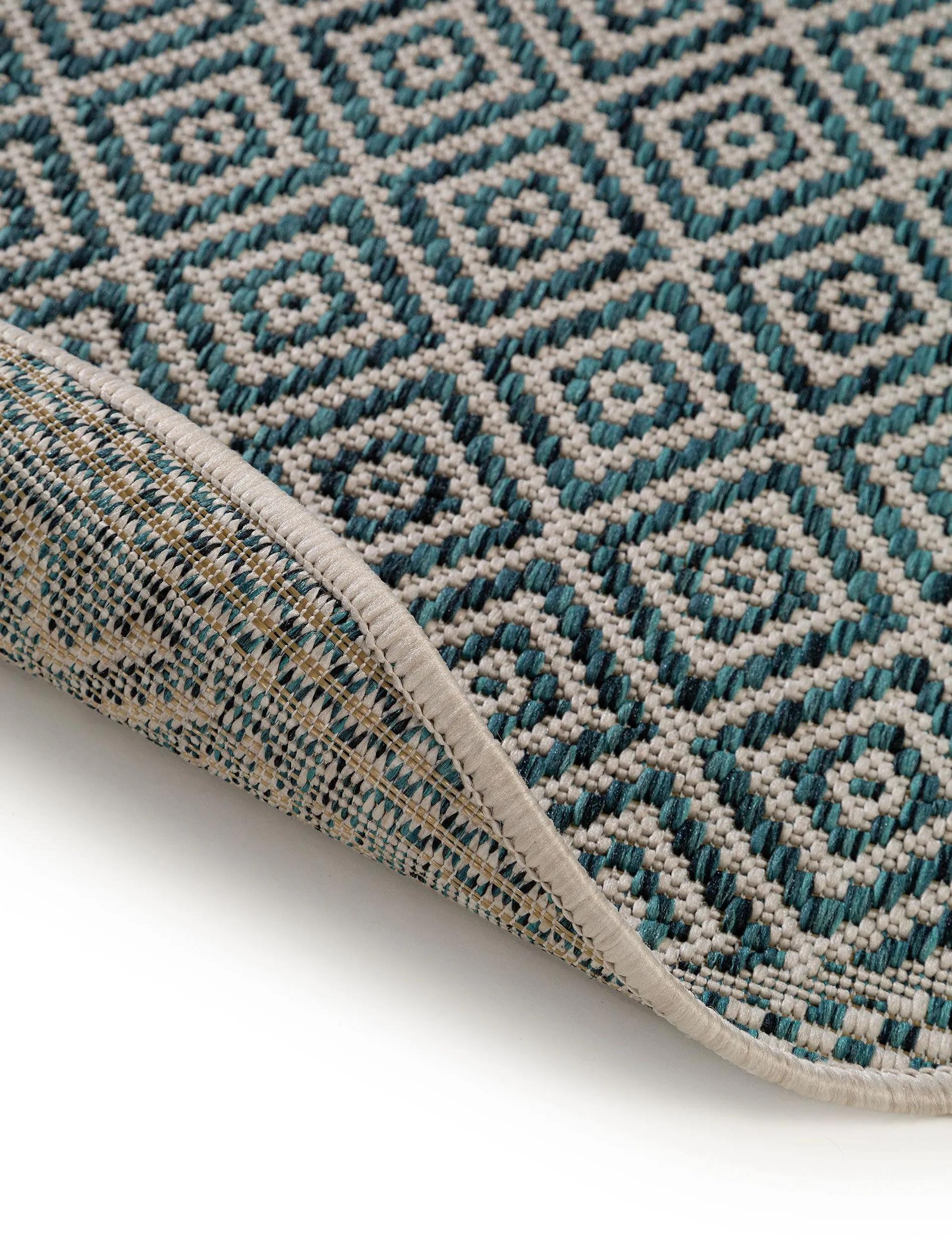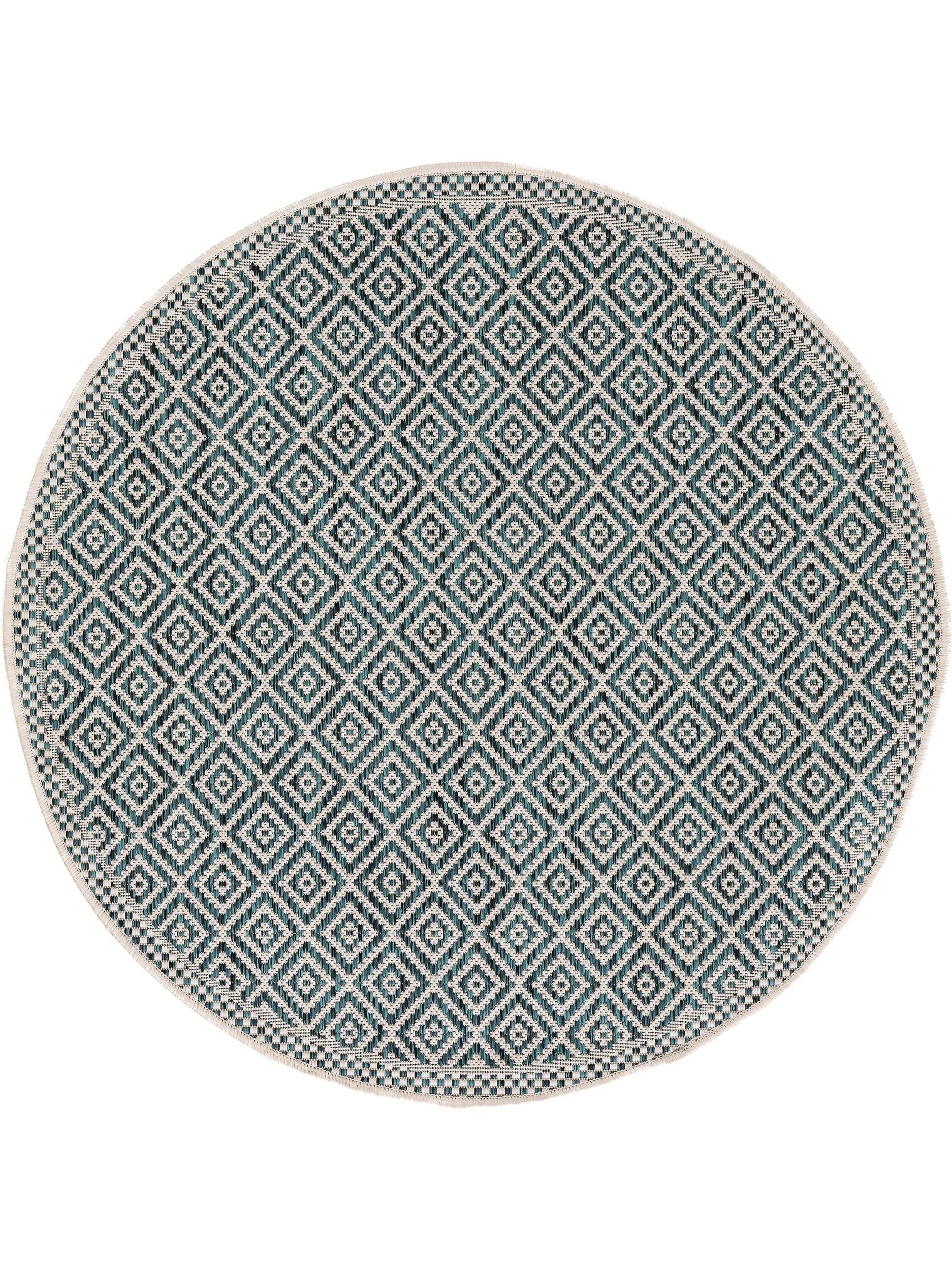 Tapis ethnique motif géométrique rond bleu d'intérieur et d'extérieur 150 cm de diamètre