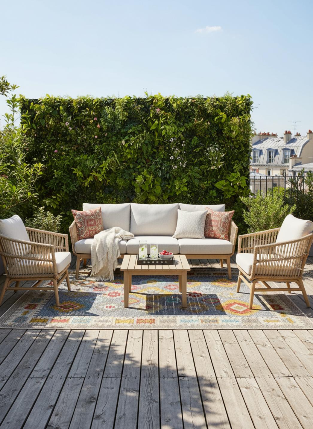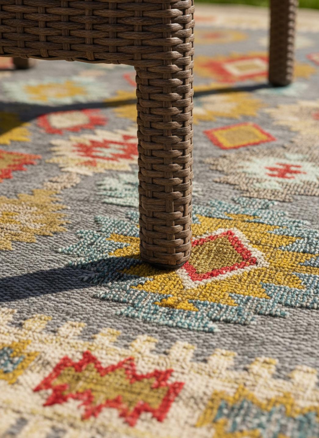 Véritable explosion de nuances, ce tapis ethnique multicolore insuffle à l’extérieur une énergie joyeuse et chaleureuse. Dans son format de 120x170 cm, il trouve naturellement sa place sur une terrasse ensoleillée, un balcon vivant ou un petit espace détente. Ses motifs d’inspiration artisanale, riches en détails, mêlent formes et teintes avec audace, créant une composition vibrante où chaque couleur semble raconter une histoire. Les tons chauds et froids s’équilibrent pour donner au décor un caractère à la fois bohème et contemporain. Ce tapis d’extérieur invite à la convivialité et à la créativité, transformant le sol en une mosaïque lumineuse qui capte la lumière du jour. Il se marie aussi bien avec un mobilier en bois naturel qu’avec des matières tressées ou colorées, apportant du relief et de la personnalité à l’ensemble. Plus qu’un accessoire, il devient un véritable accent décoratif, une touche d’ailleurs qui célèbre la couleur et l’harmonie.