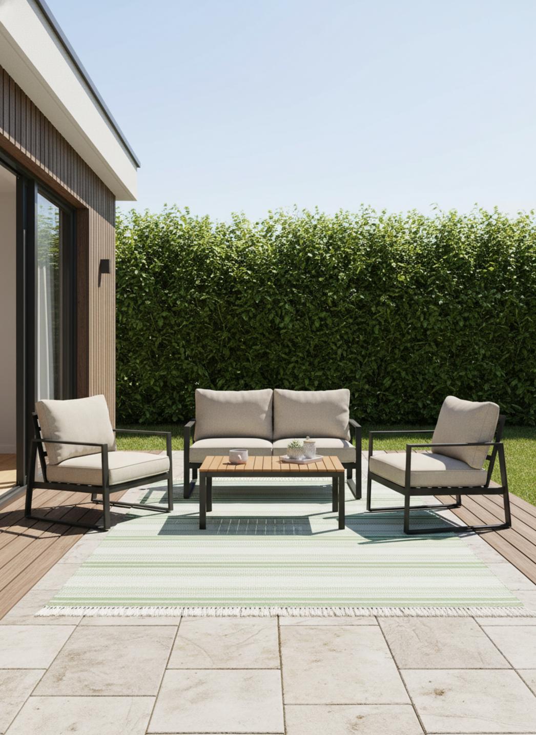 Les rayures de ce tapis ethnique vert insufflent une énergie douce et naturelle à tout espace extérieur. Son tissage à franges lui confère un charme artisanal, empreint d’authenticité et de caractère. Sur 160x230 cm, il structure la terrasse ou le patio tout en apportant une touche de fraîcheur végétale. Les nuances de vert s’étirent en bandes harmonieuses, évoquant la légèreté des fibres naturelles et la sérénité des jardins d’été. Sous la lumière du jour, la texture se révèle avec subtilité, mêlant reliefs et jeux d’ombres délicats. Parfait pour créer une ambiance conviviale autour d’un salon d’extérieur ou d’un coin repas, ce tapis d’intérieur et d’extérieur invite à la détente et au partage. Avec son allure bohème chic et ses finitions soignées, il incarne un équilibre rare entre esprit nomade et élégance contemporaine, comme une respiration verte dans la décoration.