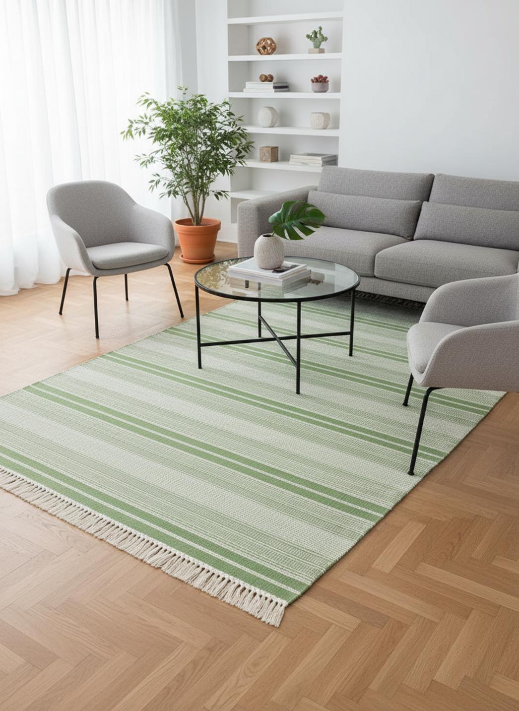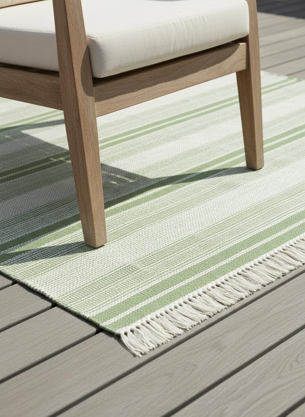 Tapis ethnique rayé à franges vert d'intérieur et d'extérieur 160x230 cm