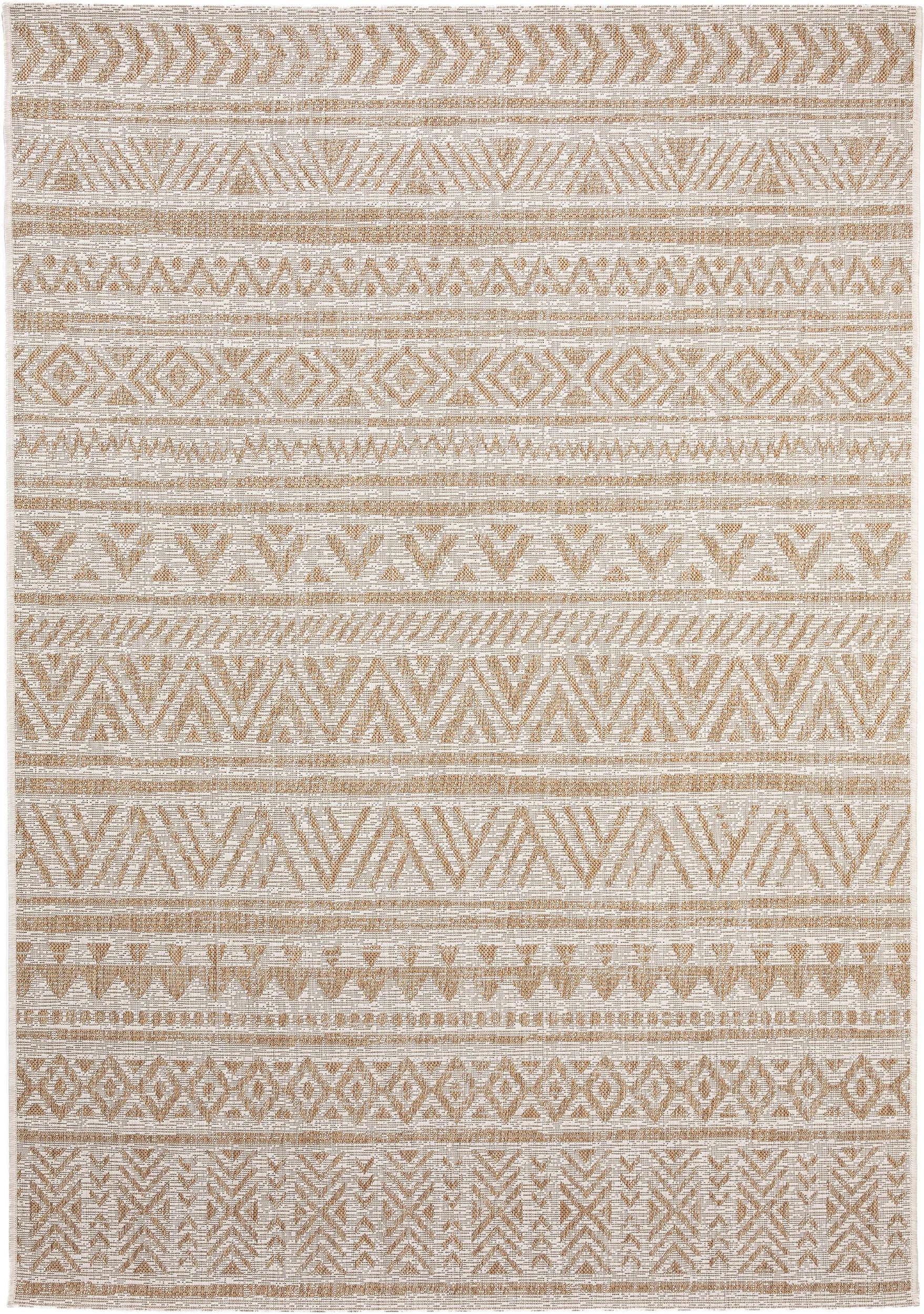 Tapis ethnique rayé crème et beige d'intérieur et d'extérieur 240x340 cm