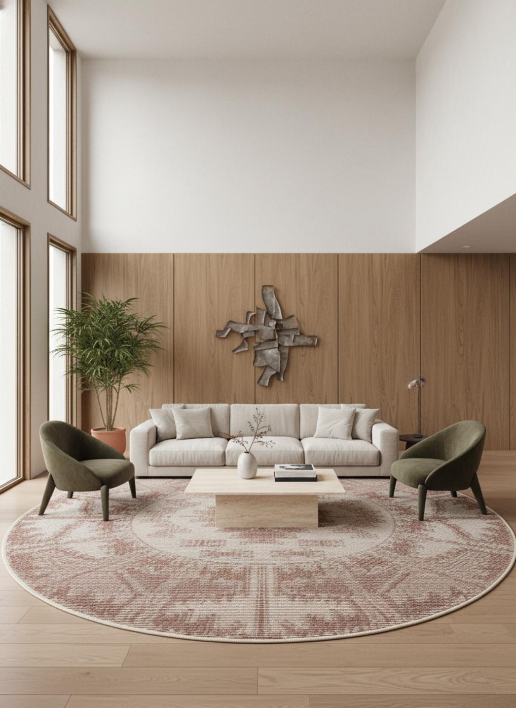 Tapis ethnique rond terracotta d'intérieur et d'extérieur 200 cm de diamètre