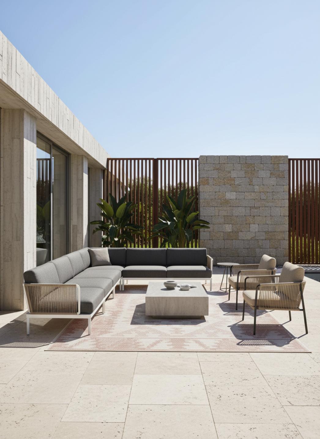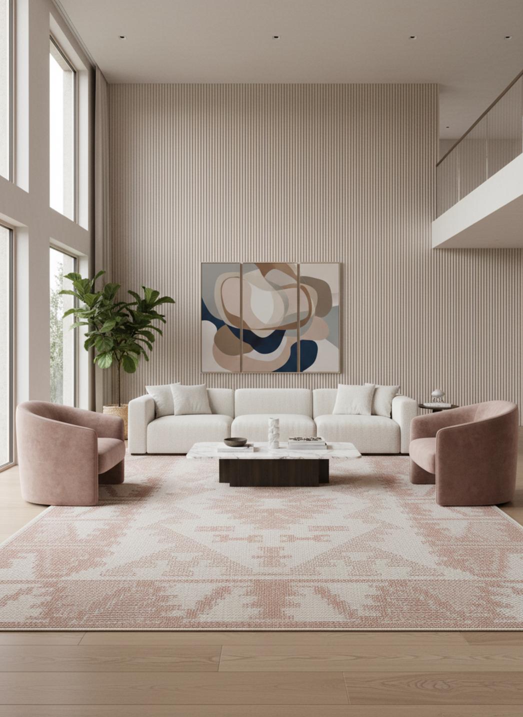 Ce tapis ethnique terracotta déploie sur 300x400 cm toute la puissance de son charme artisanal et la chaleur de ses nuances naturelles. Parfait pour les grands espaces extérieurs, il habille terrasses, patios ou jardins d’accueil d’une élégance solaire et authentique. Ses motifs d’inspiration traditionnelle apportent du relief et une profondeur visuelle qui structurent le décor sans le figer. La teinte terracotta, vibrante et enveloppante, évoque les terres du sud et les pigments naturels chauffés par le soleil, diffusant une lumière douce et rassurante. Sous la clarté du jour, les jeux d’ombres et de reflets révèlent toute la richesse du tissage. Ce tapis d’intérieur et d’extérieur incarne l’alliance parfaite entre esprit bohème et design contemporain, transformant chaque lieu en un espace vivant et harmonieux, empreint de convivialité, de caractère et de sérénité.