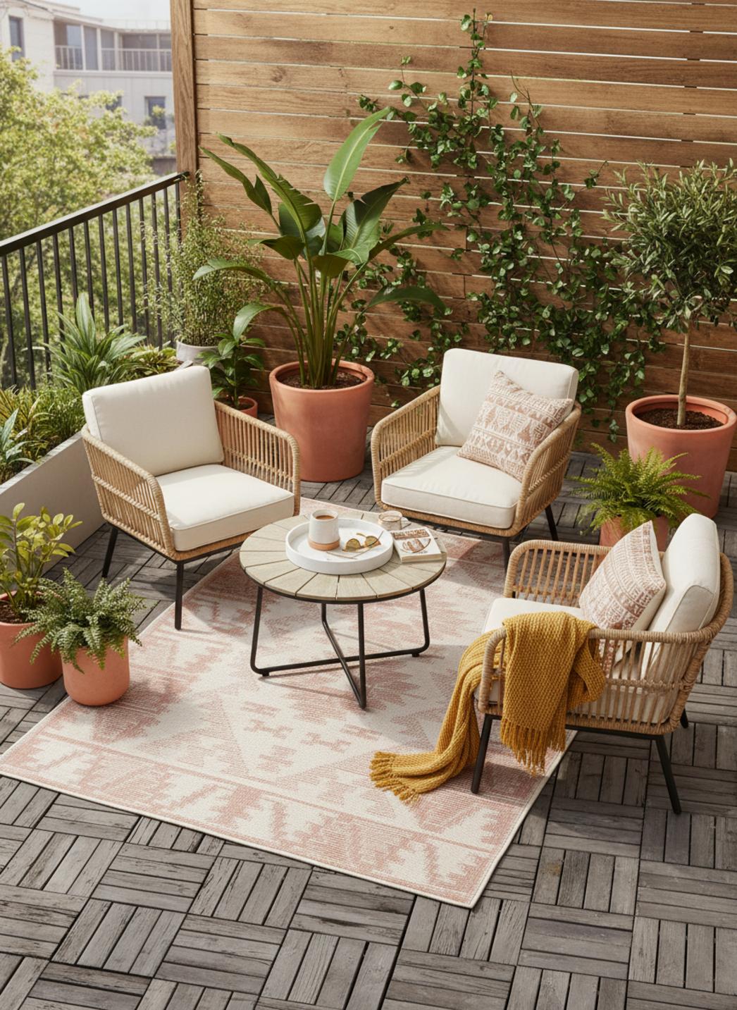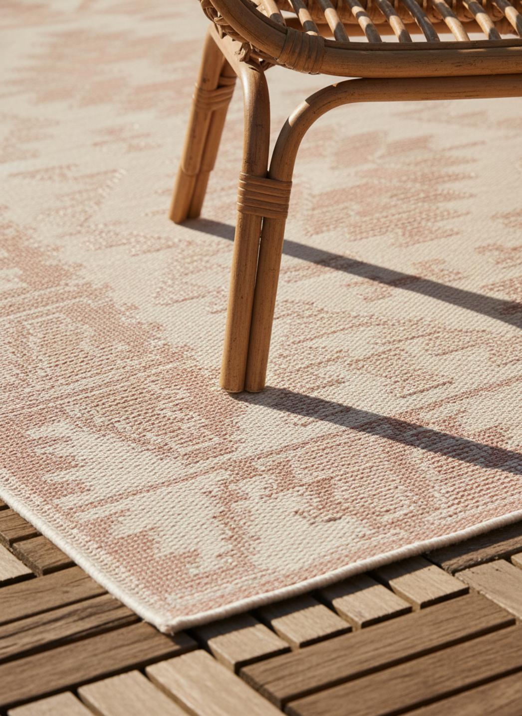 Dans une entrée lumineuse ou sur un balcon baigné de soleil, le tapis ethnique terracotta diffuse une chaleur naturelle et réconfortante. Ses motifs discrets, inspirés des tissages traditionnels, évoquent l’authenticité du savoir-faire artisanal tout en s’intégrant parfaitement à une décoration contemporaine. La teinte terracotta, profonde et solaire, apporte une note chaleureuse qui sublime les matières naturelles et les tons neutres environnants. En format 80x150 cm, il s’adapte aisément aux petits espaces, reliant intérieur et extérieur dans une continuité douce et harmonieuse. Ce modèle incarne la vitalité élégante de la collection de tapis d’extérieur, où la couleur et la texture se conjuguent pour créer des ambiances vivantes et apaisées. Sa surface tissée à plat capte la lumière et révèle de subtiles nuances, ajoutant relief et profondeur au décor. On retrouve cette même énergie équilibrée dans la gamme de tapis de balcon, idéale pour habiller les espaces restreints d’une touche de chaleur naturelle. Un tapis qui transforme la simplicité en douceur et le quotidien en moment de lumière.