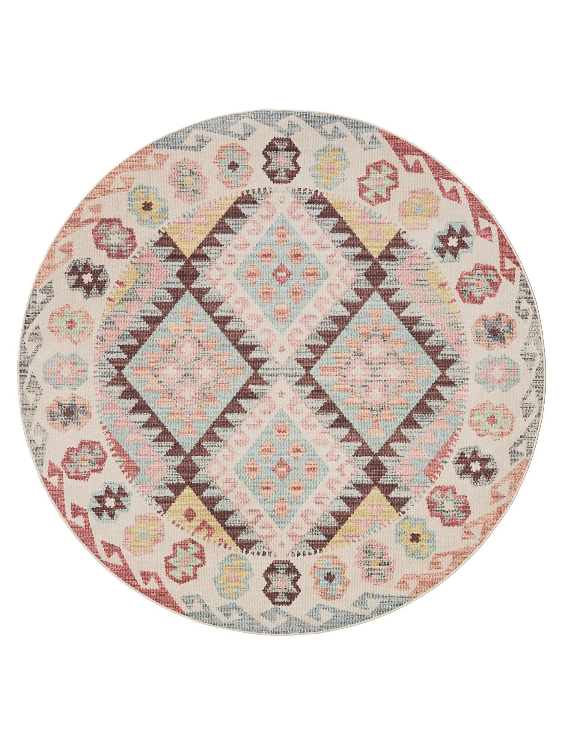 Tapis ethnique tons clairs rond multicolore lavable 160 cm de diamètre
