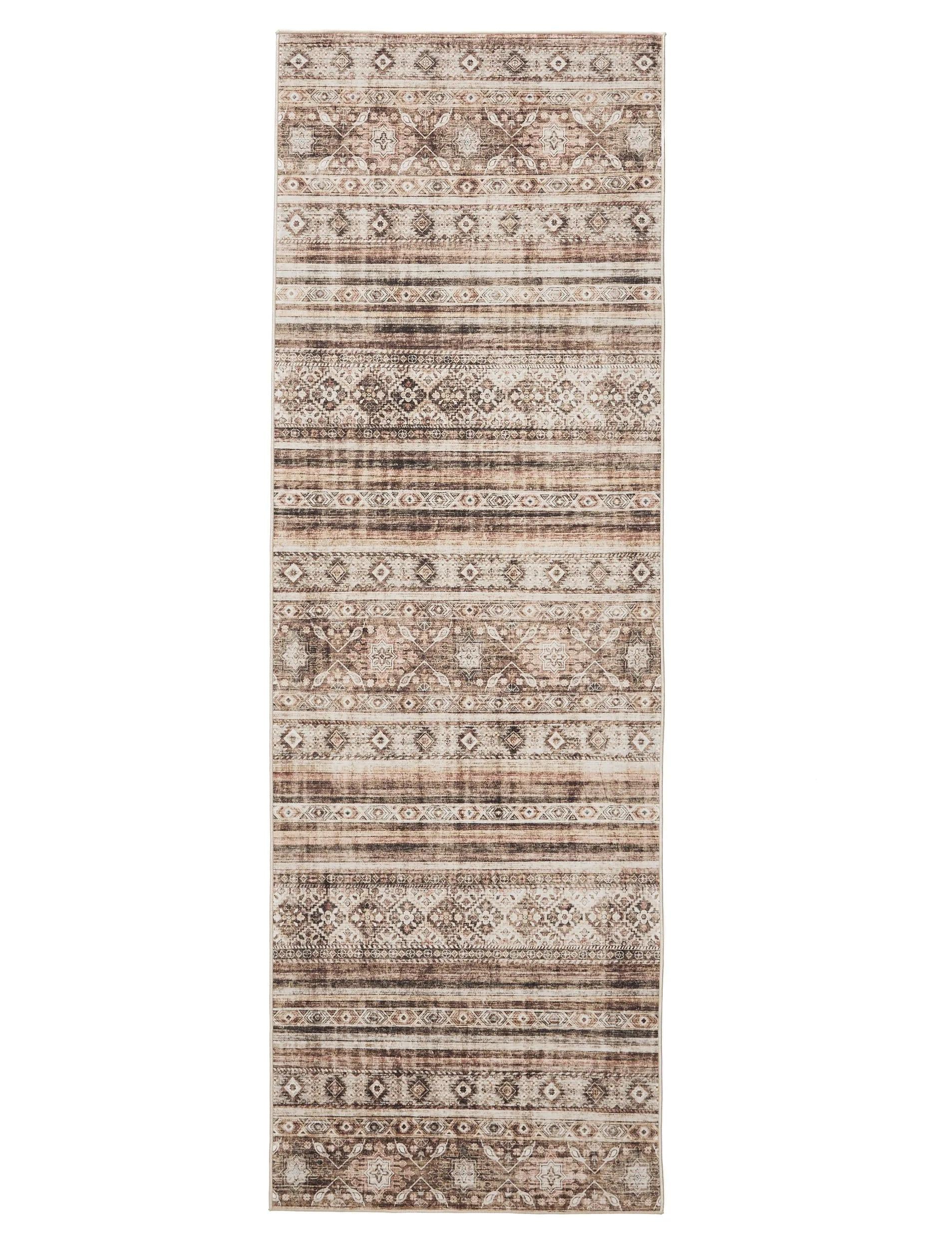 Tapis ethnique vintage de couloir marron lavable 80x240 cm