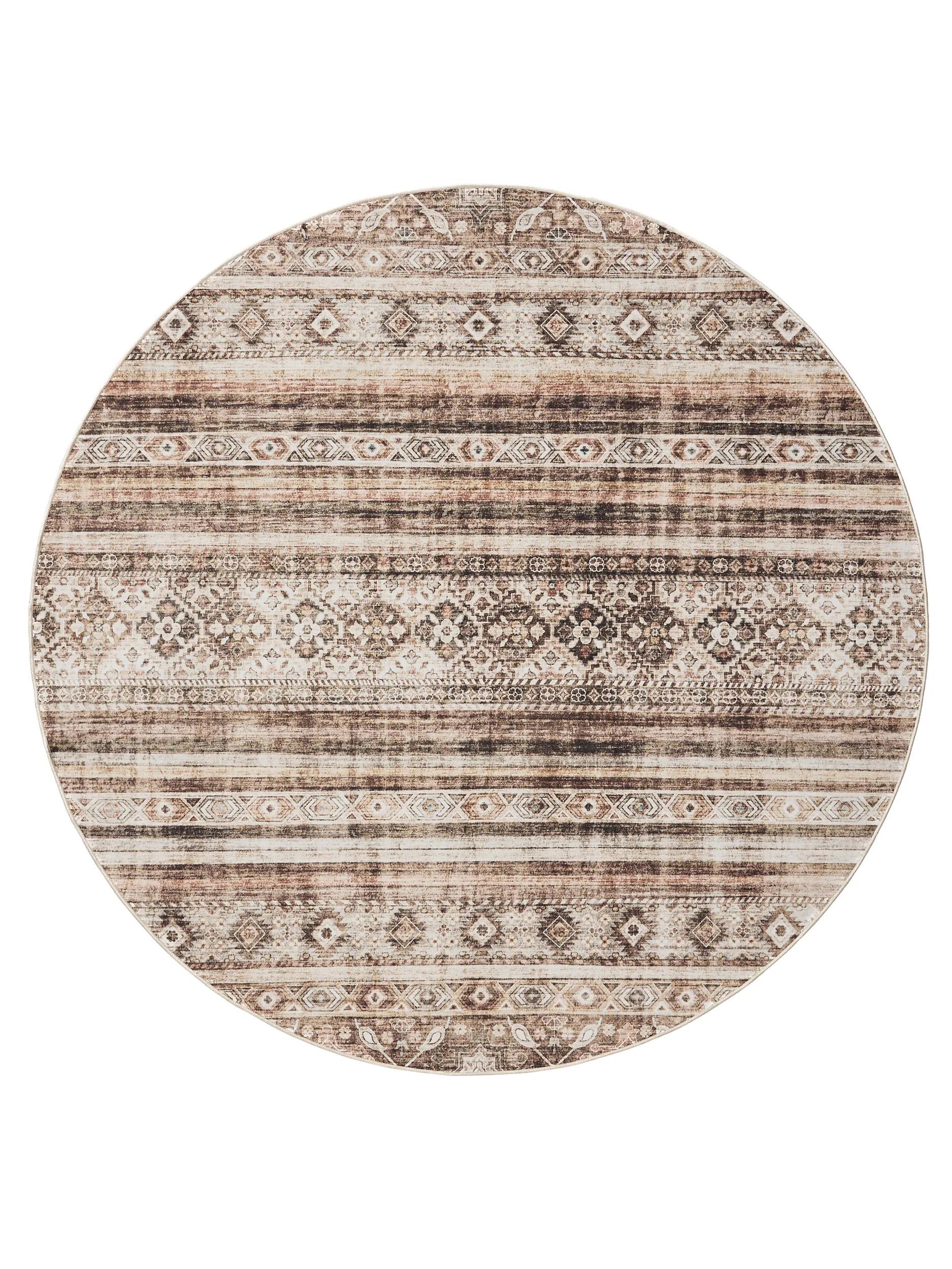 Tapis ethnique vintage rond marron lavable 120 cm de diamètre
