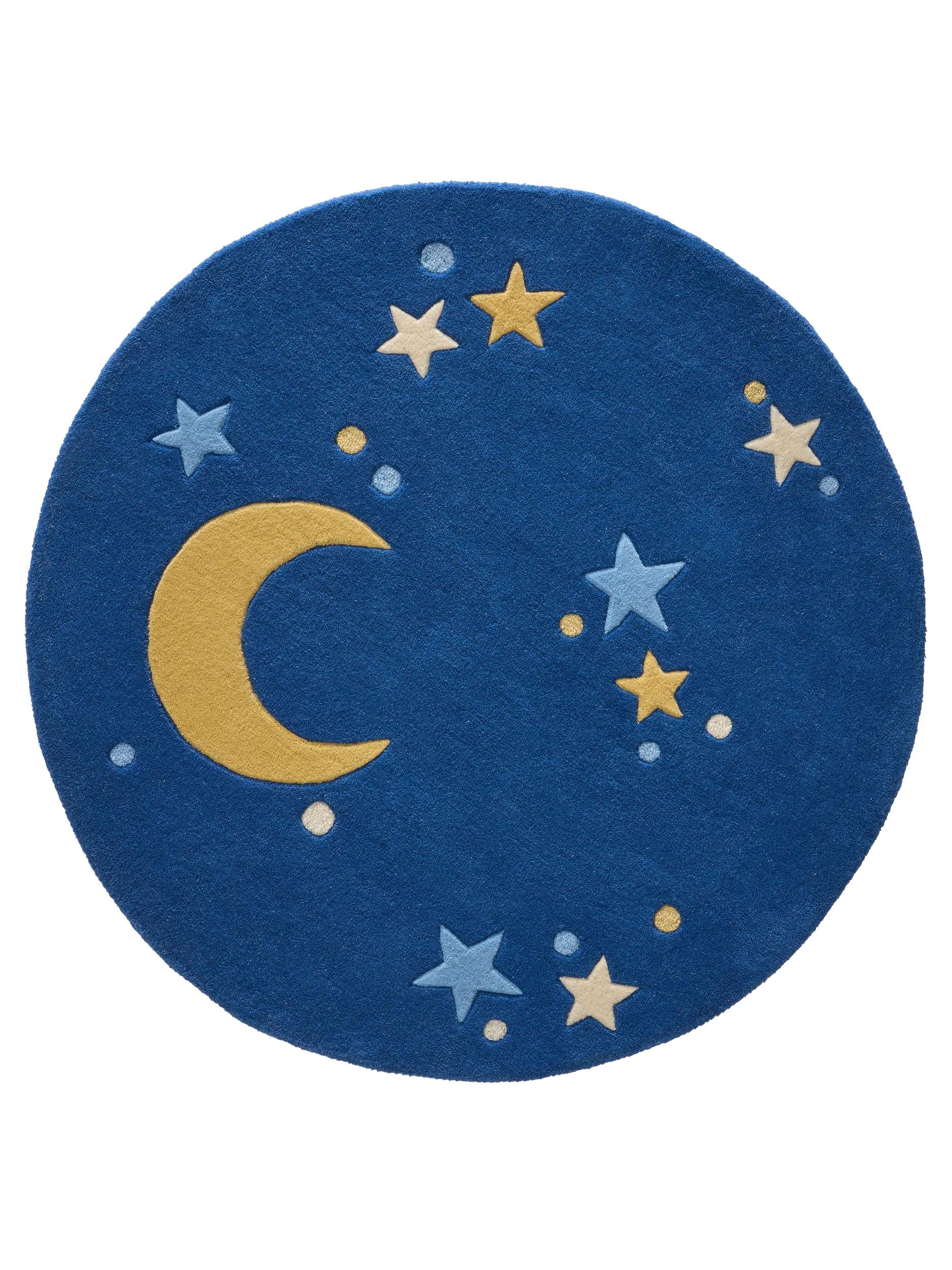 Tapis étoile rond enfant bleu en laine 120 cm de diamètre