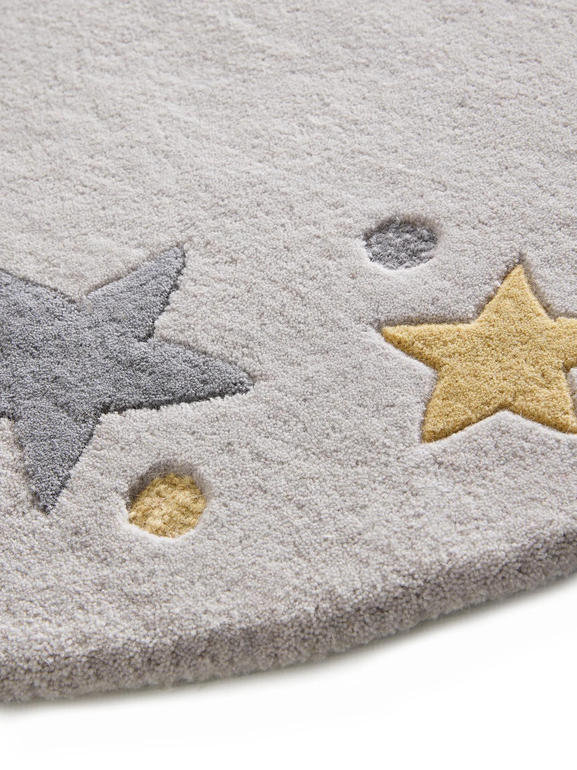 Tapis étoile rond enfant gris en laine 120 cm de diamètre