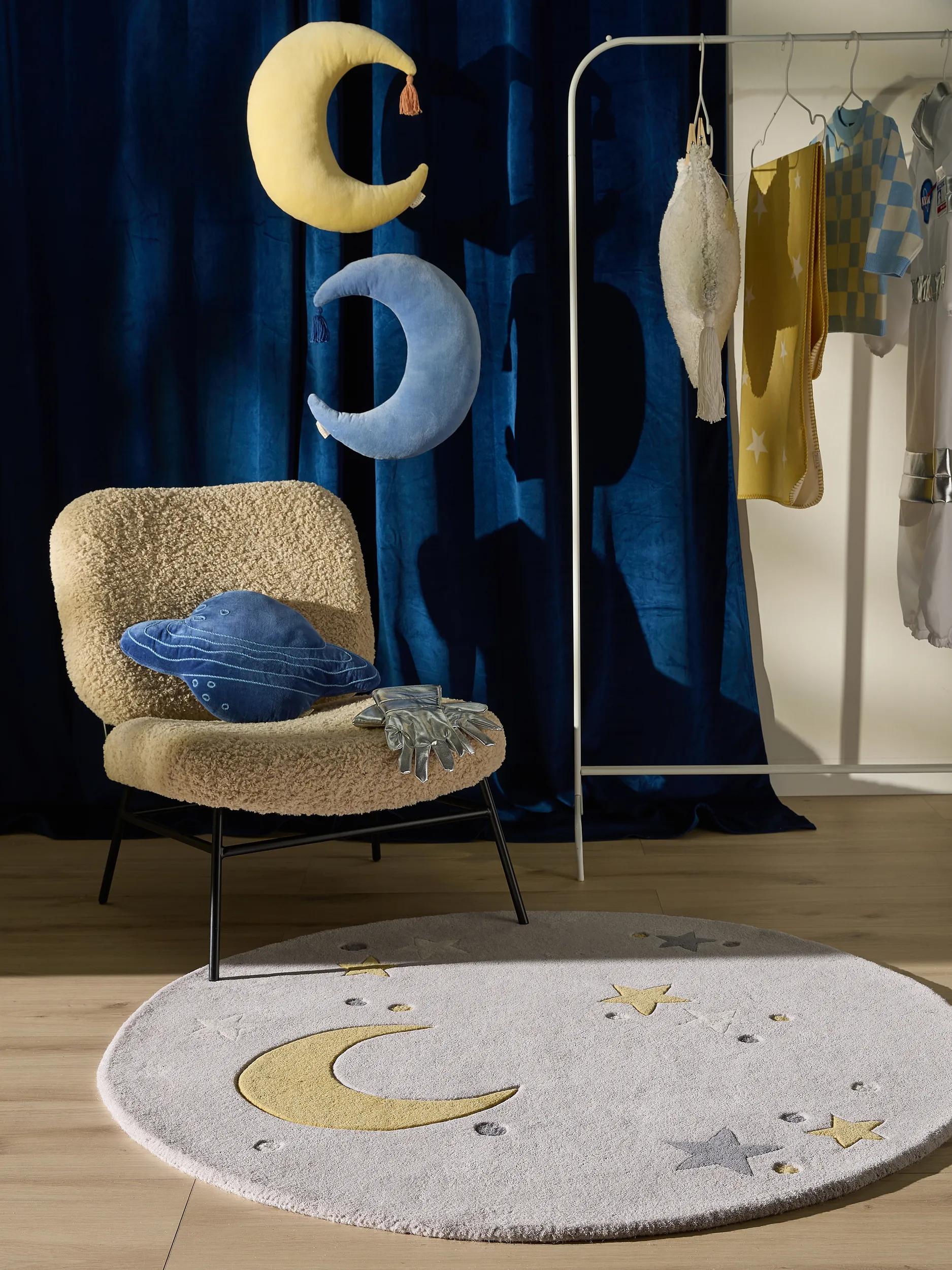 Avec son diamètre de 120 cm, ce tapis devient la pièce maîtresse du coin jeu, sans jamais empiéter sur la circulation. L’entretien se révèle facile : un simple passage d’aspirateur doux élimine poussière et petites miettes, tandis qu’un nettoyage ponctuel préserve l’éclat des fibres. Vous profitez d’une matière durable, résistante aux usages intenses, et d’un entretien simplifié pour plus de sérénité.