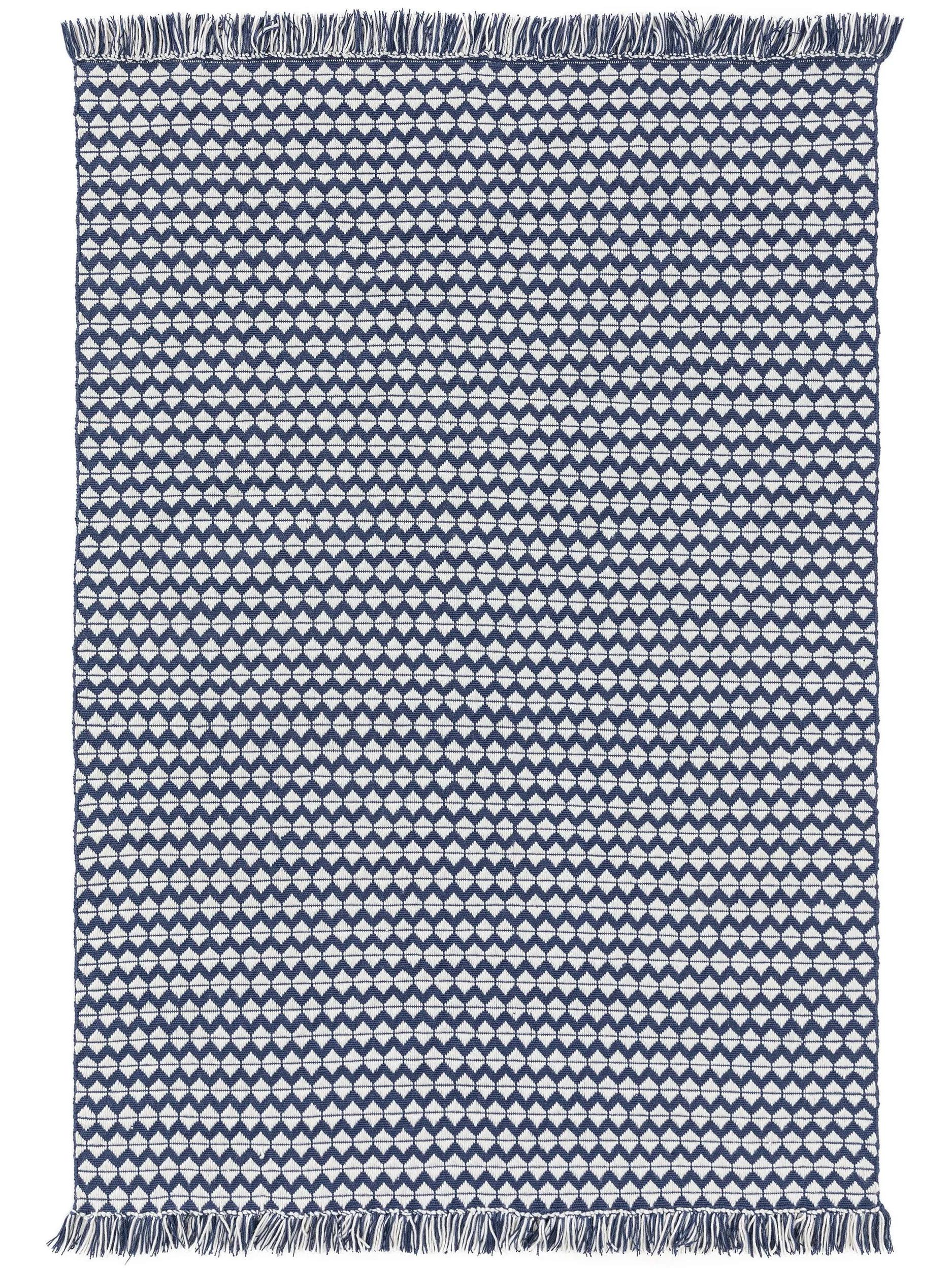 Tapis géométrique à franges bleu marine et blanc 160x230 cm