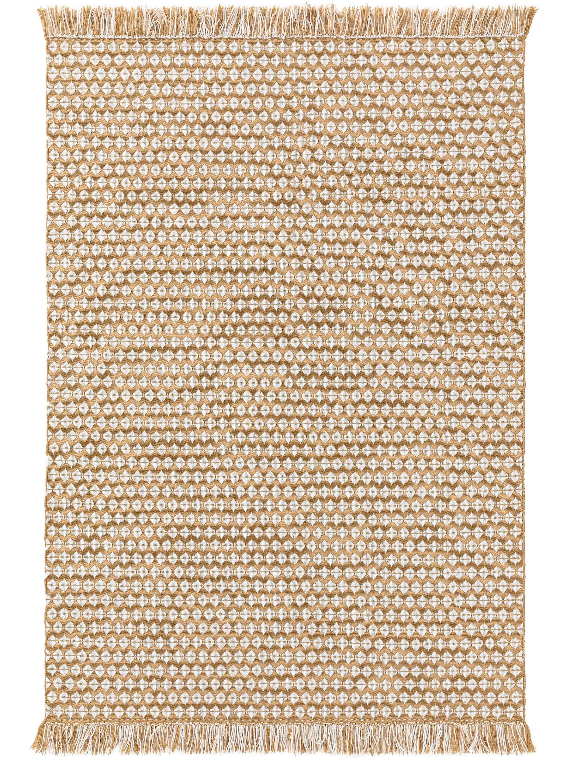 Tapis géométrique à franges jaune moutarde et blanc 200x300 cm