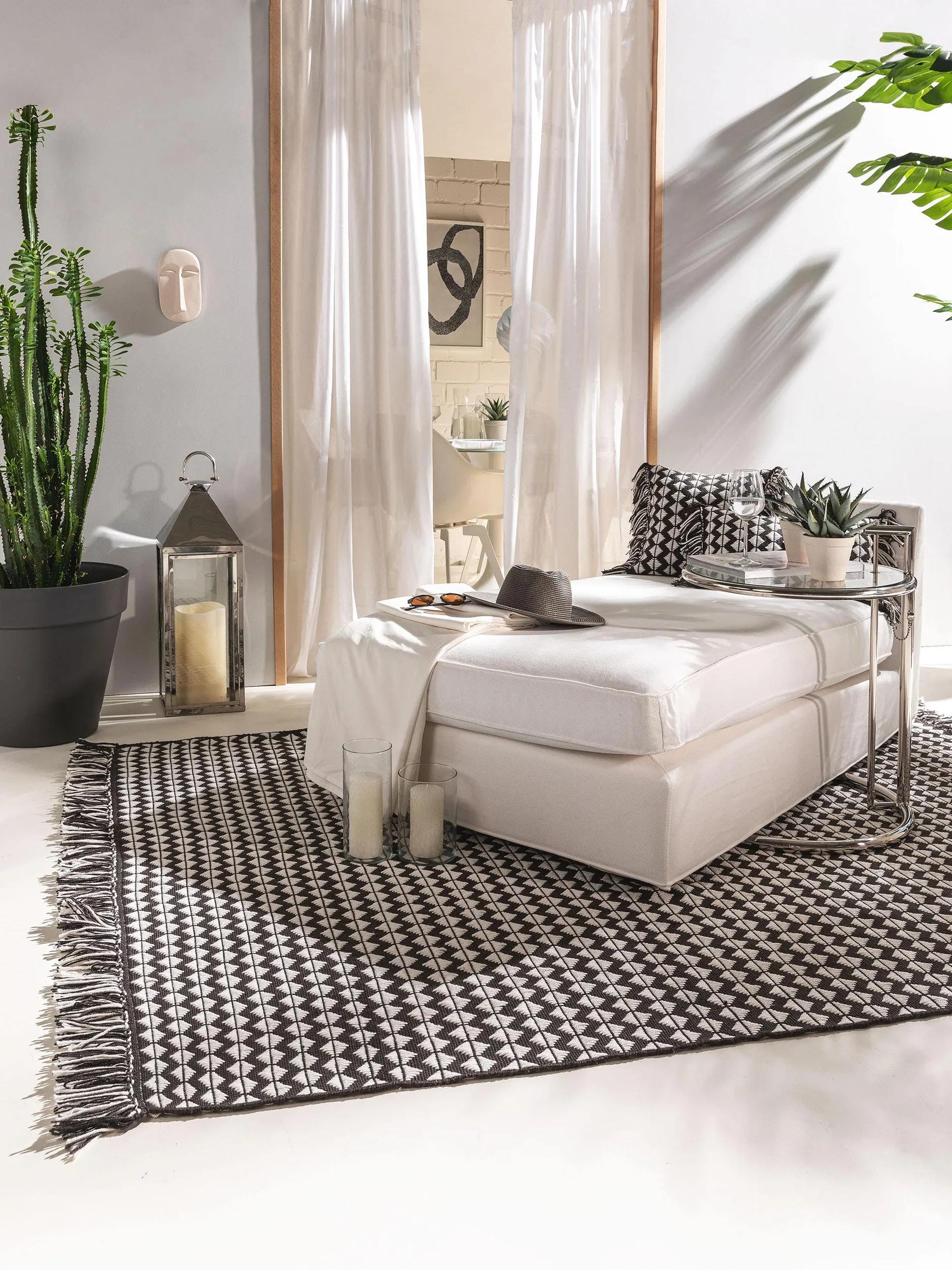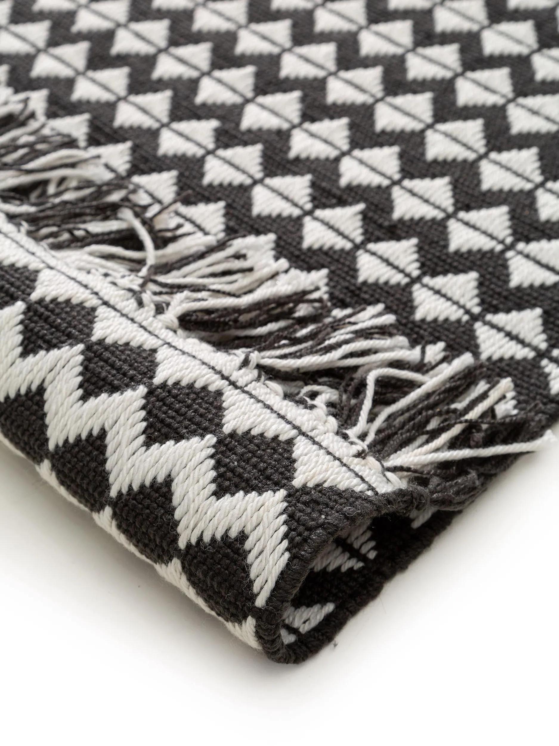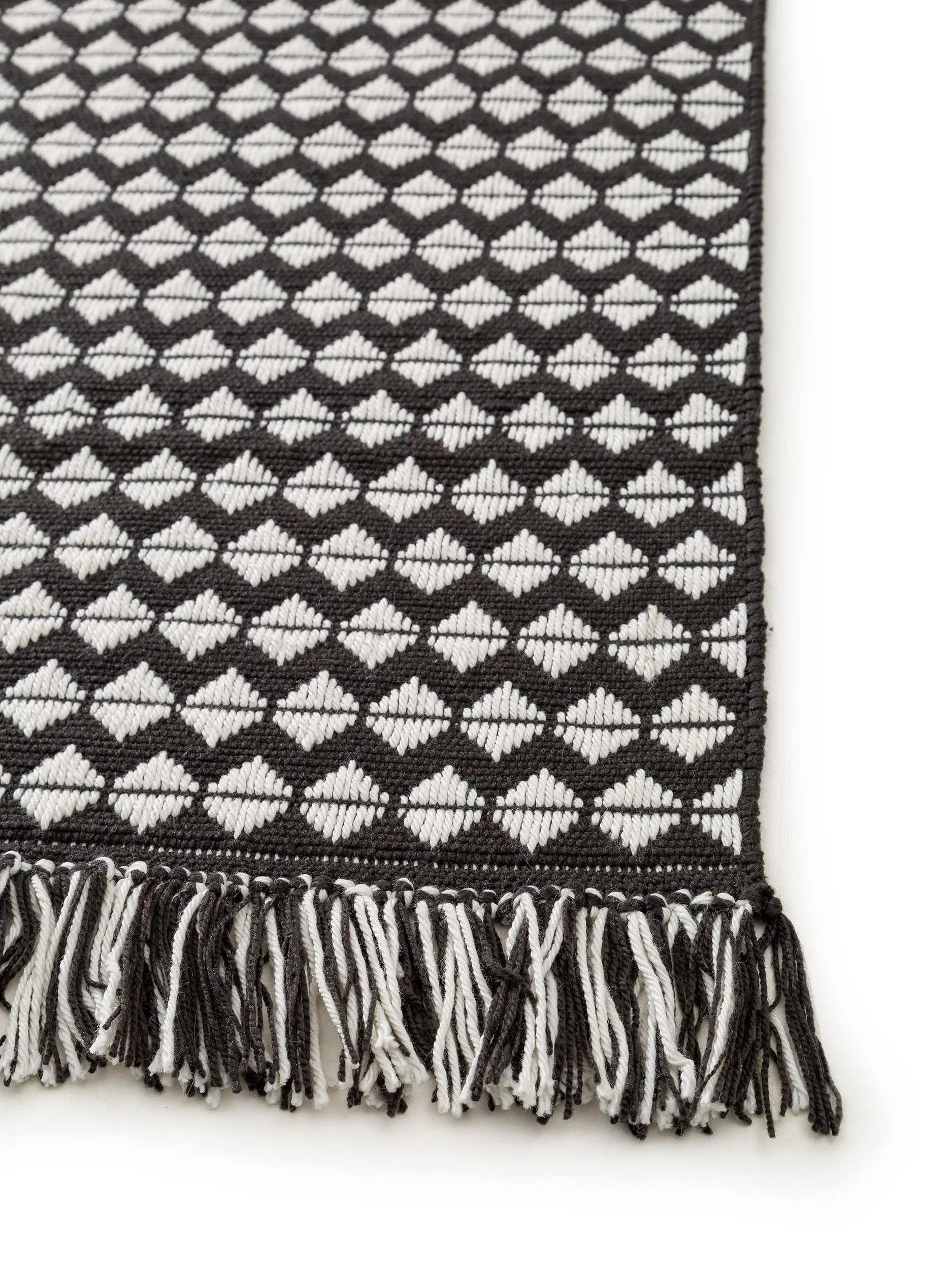 Tapis géométrique à franges noir et blanc 160x230 cm