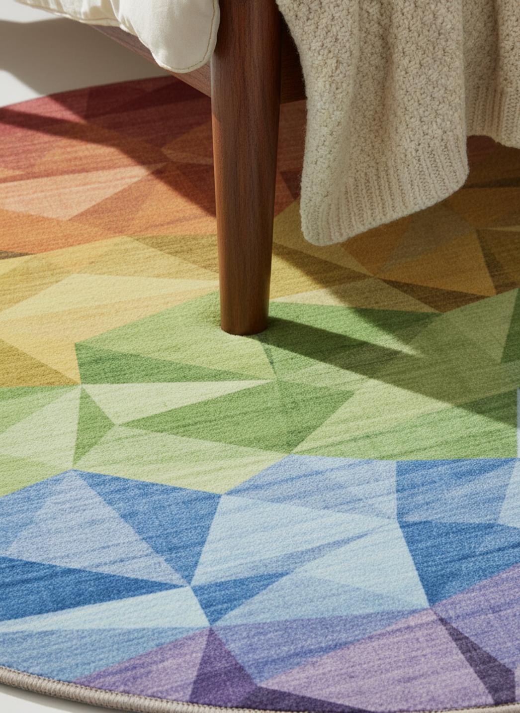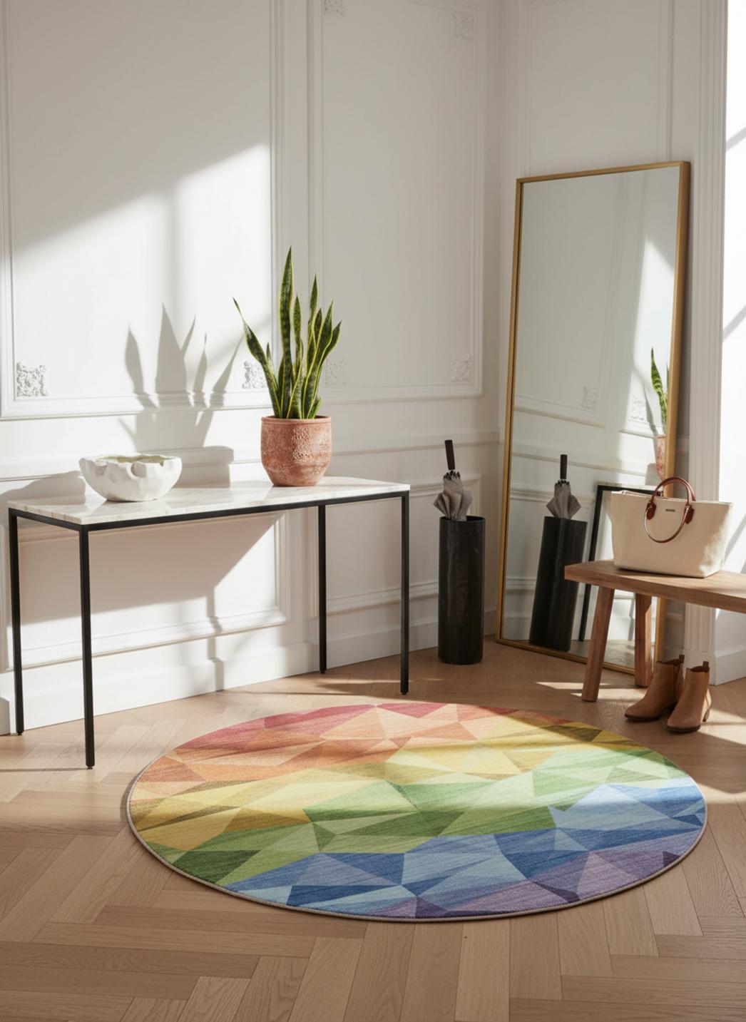 Tapis géométrique arc-en-ciel rond multicolore lavable 120 cm de diamètre