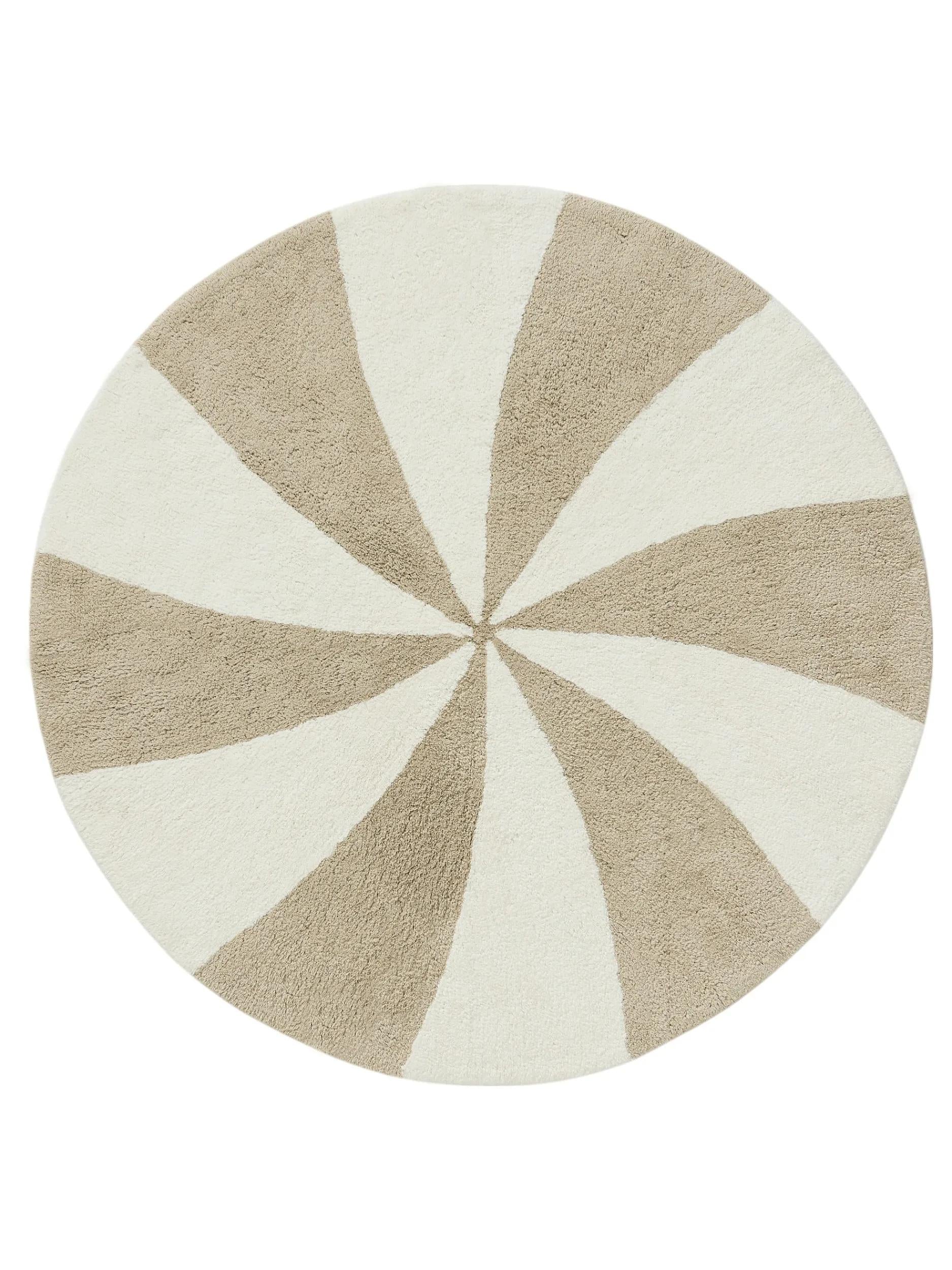 Tapis géométrique cirque rond enfant crème et beige en coton 120 cm de diamètre