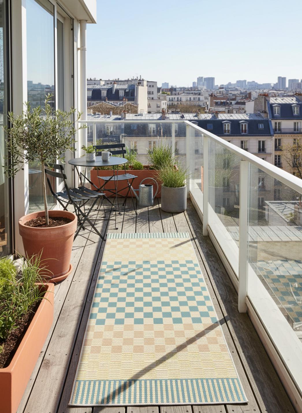 Le tapis géométrique damier de couloir vert d’eau et beige offre une interprétation douce et moderne du motif classique. Ses carreaux s’alternent avec légèreté, créant une sensation de mouvement fluide idéale pour accompagner la circulation. Le vert d’eau, apaisant et lumineux, s’accorde à la clarté du beige pour composer une atmosphère fraîche et équilibrée. En 80x200 cm, il relie les pièces avec naturel et structure l’espace sans l’alourdir. Ce modèle traduit la finesse décorative des tapis d’extérieur, où la géométrie s’exprime à travers la texture et la lumière. Son tissage à plat met en valeur la délicatesse du motif et les nuances subtiles qui varient selon l’éclairage. On retrouve cette même élégance naturelle dans la sélection de tapis de balcon, parfaite pour prolonger l’esprit clair et raffiné jusque dans les espaces étroits. Un tapis qui associe fraîcheur et douceur dans une harmonie apaisante.
