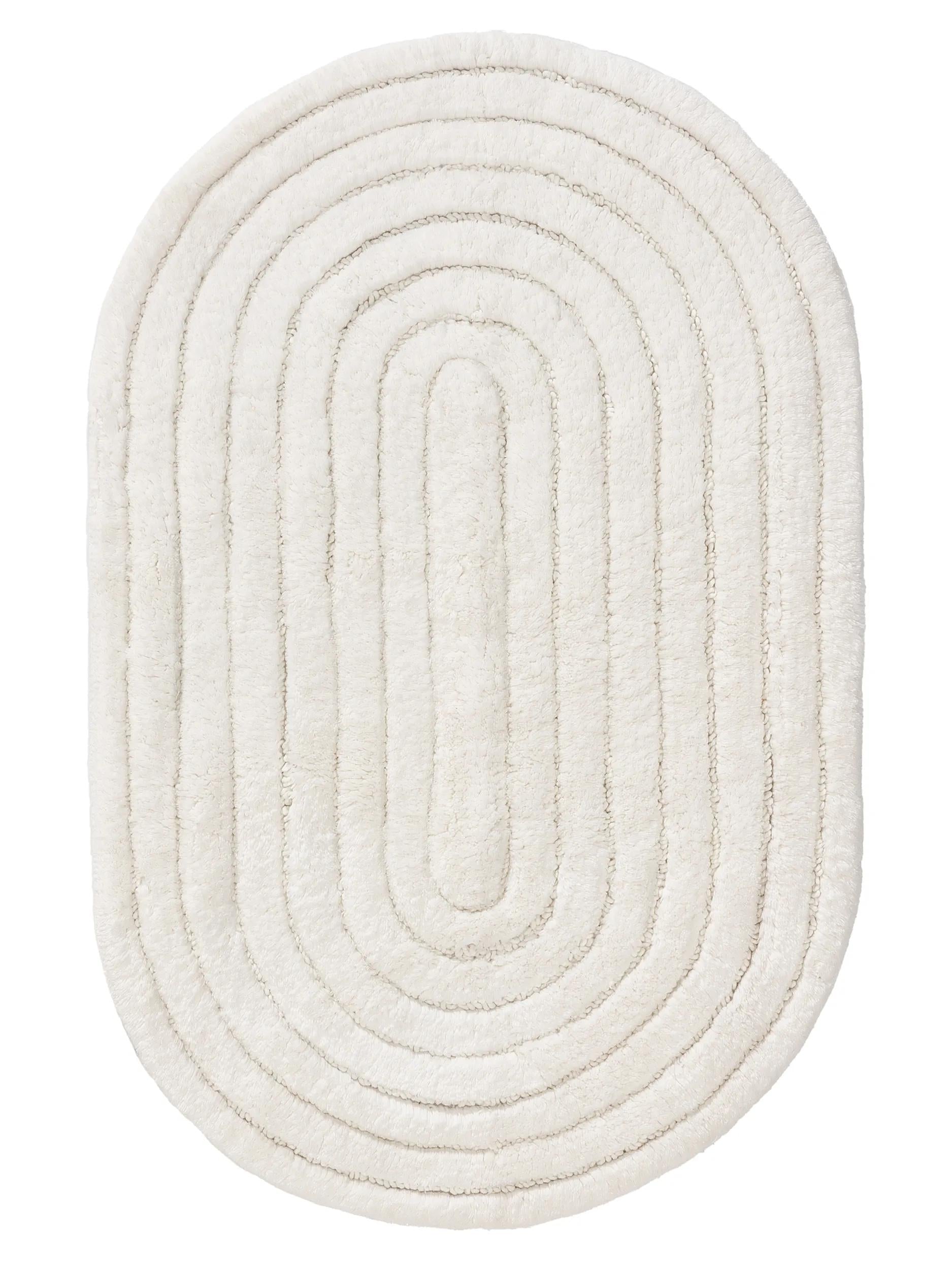 Tapis géométrique de bain blanc en coton 70x120 cm