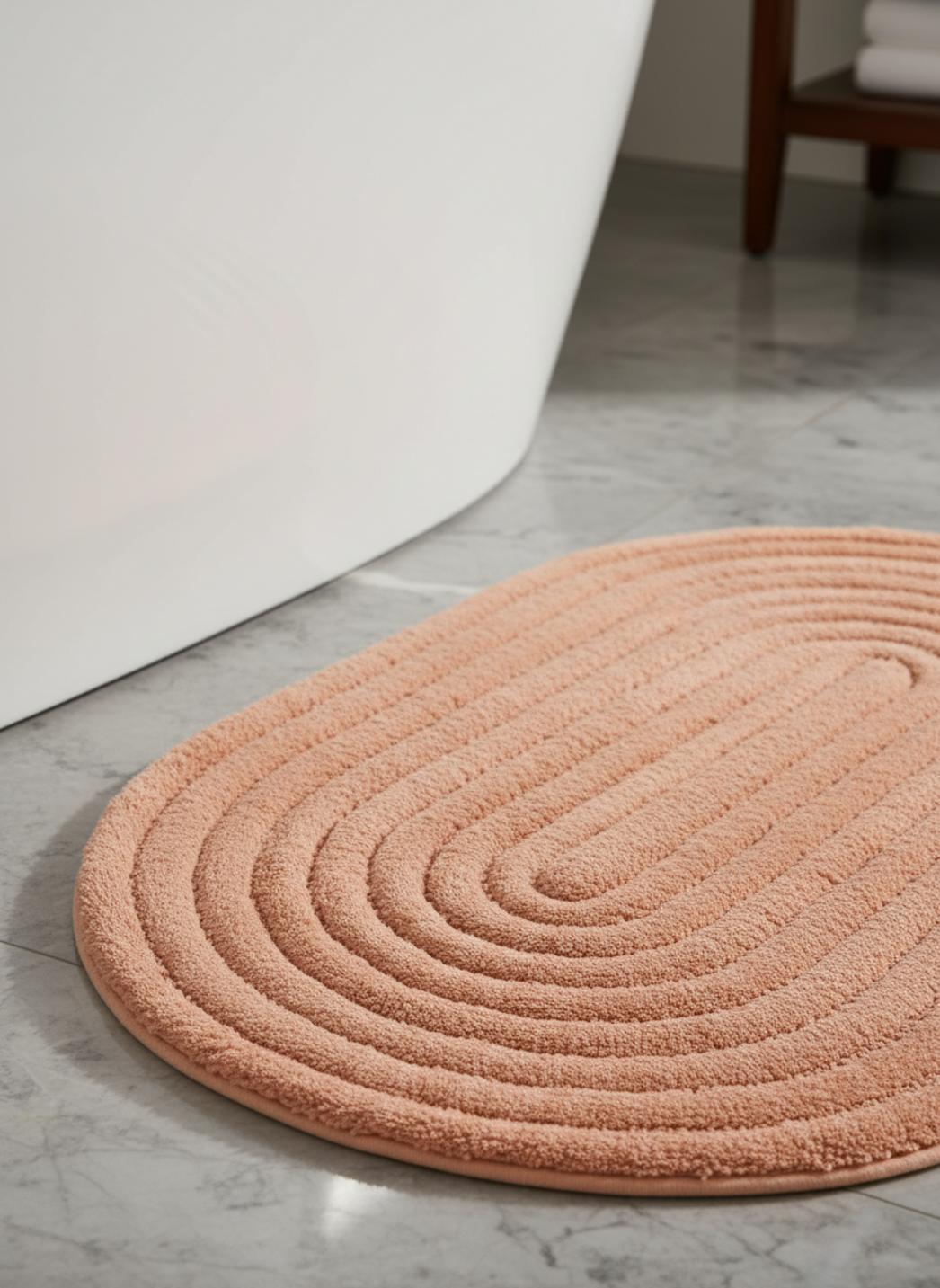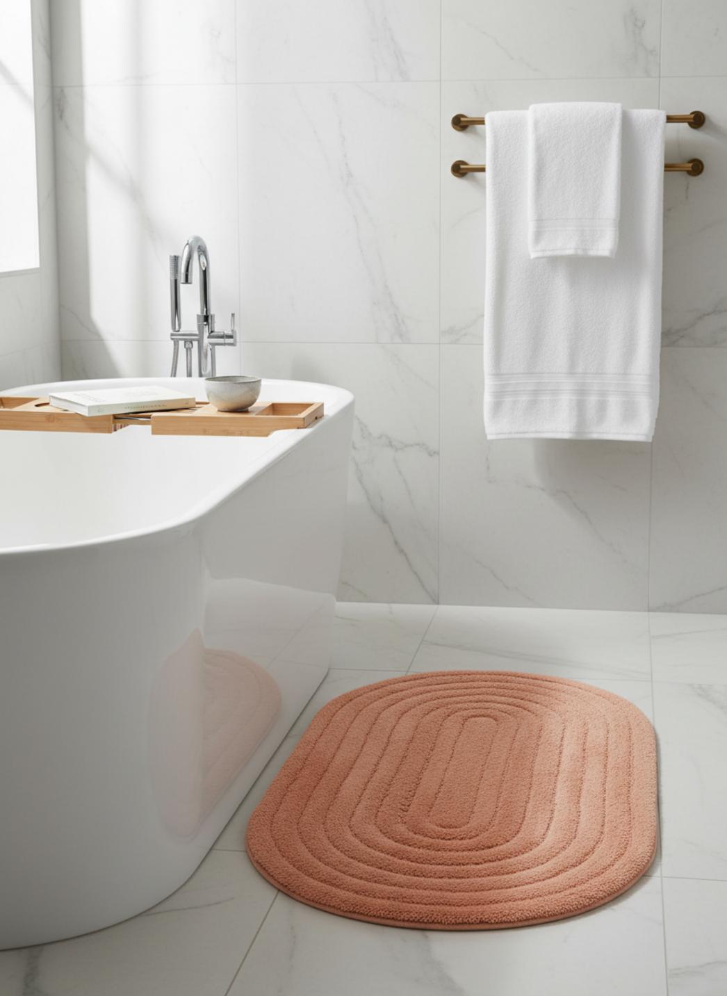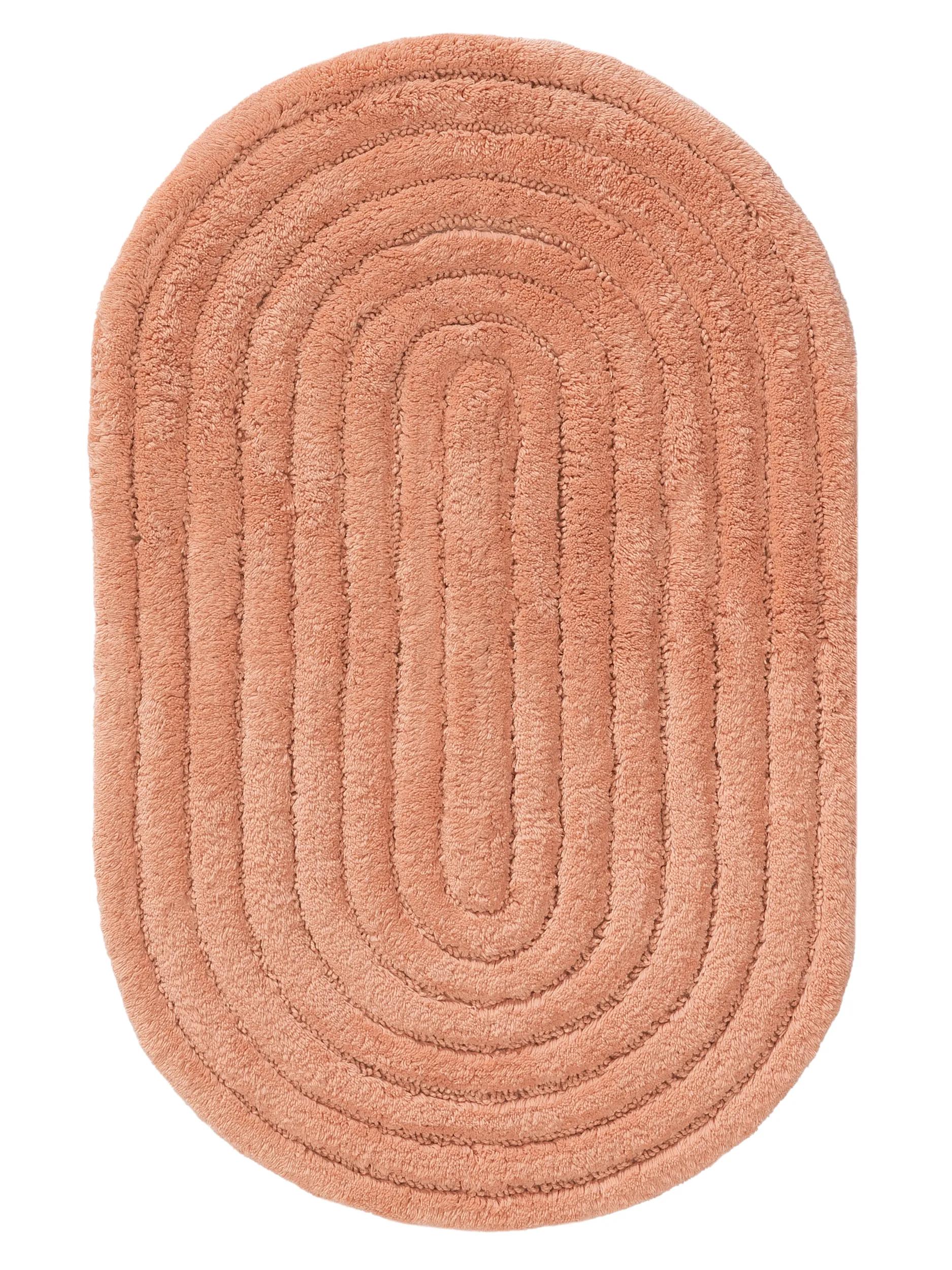 Tapis géométrique de bain orange pêche en coton 70x120 cm