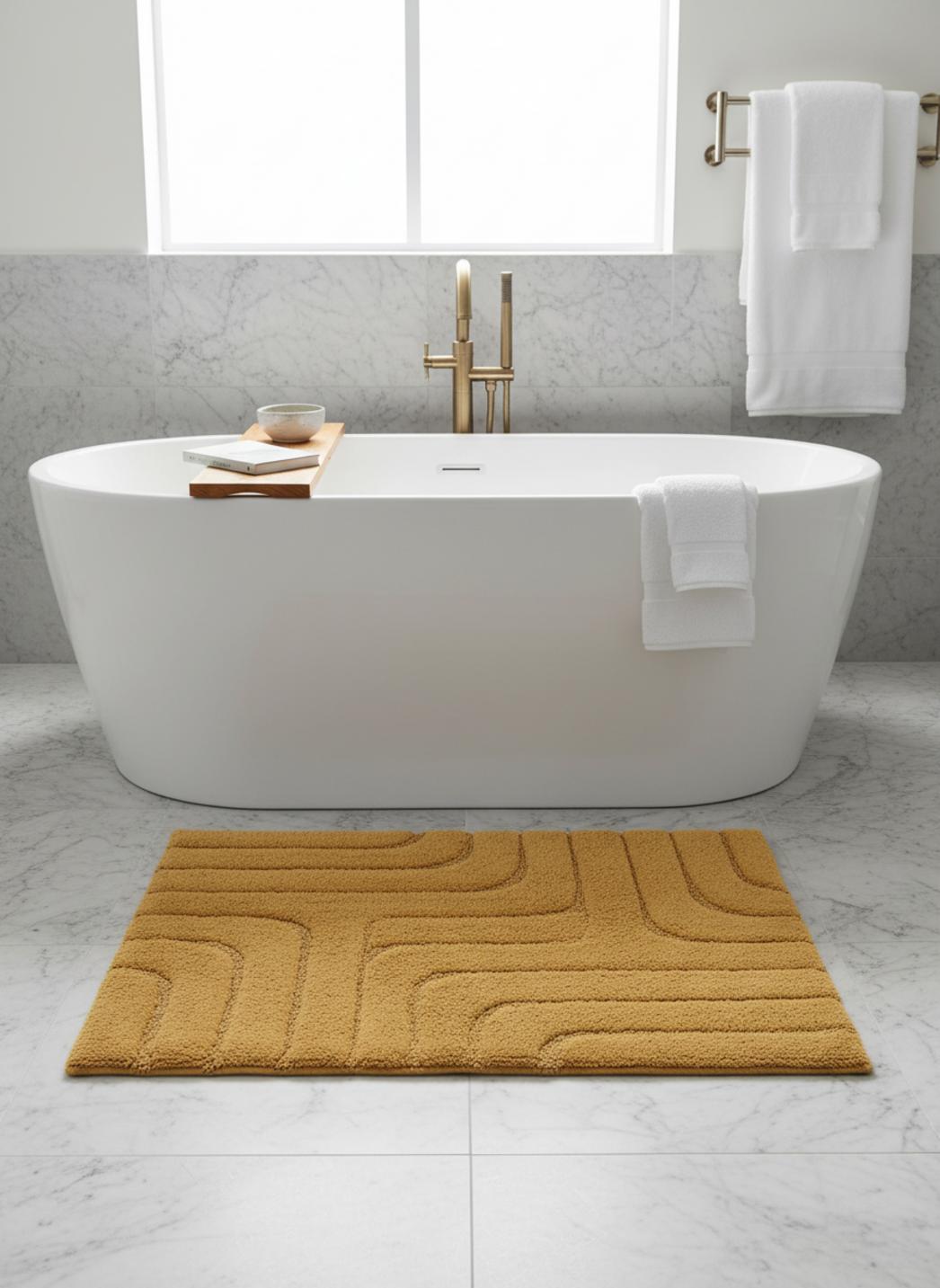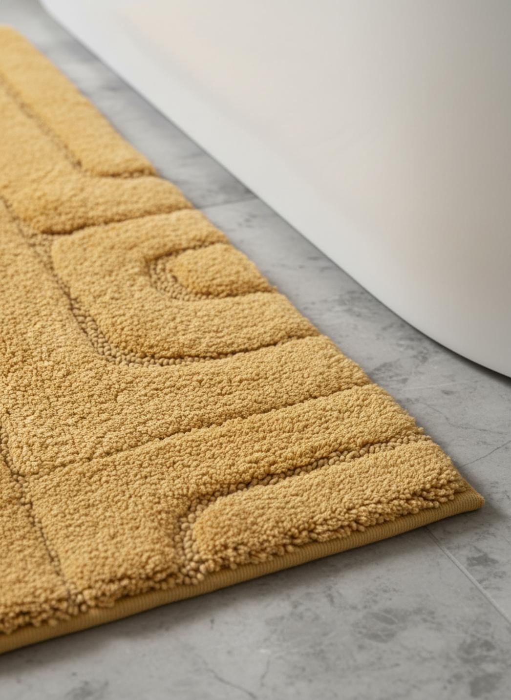 Tapis géométrique design de bain jaune en coton 70x120 cm