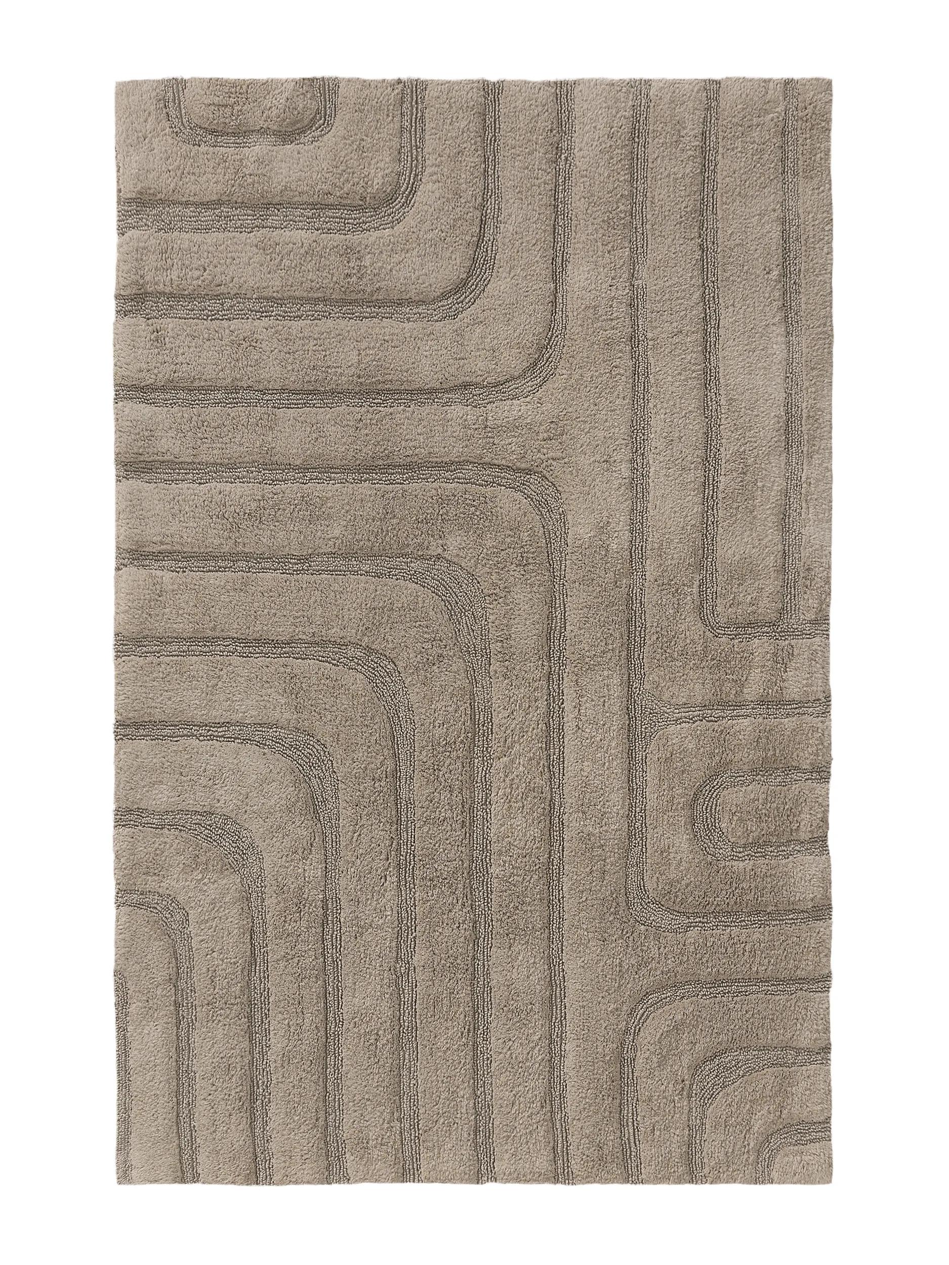 Tapis géométrique design de bain taupe en coton 70x120 cm
