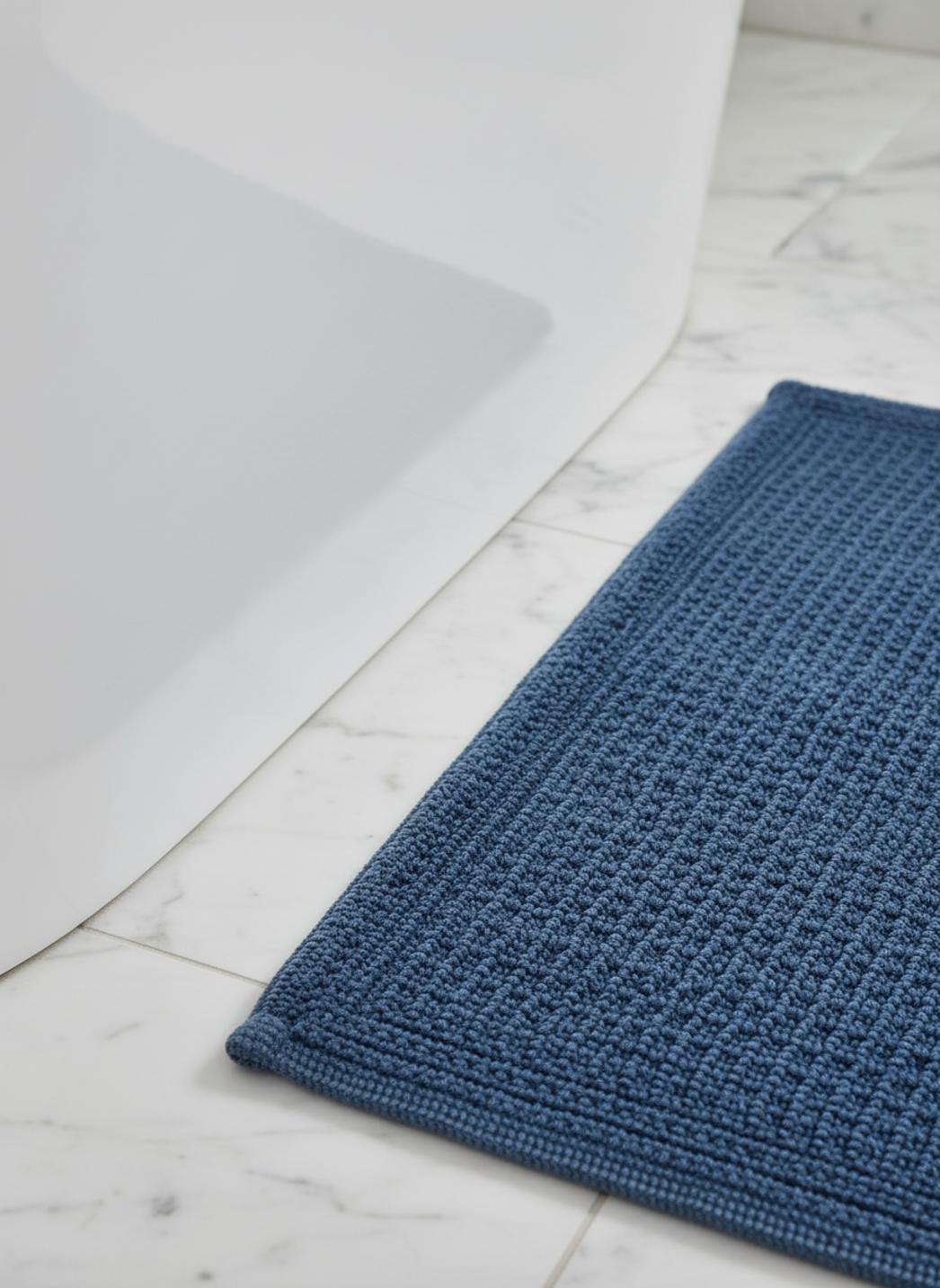 Tapis géométrique grille de bain bleu foncé en coton 50x80 cm