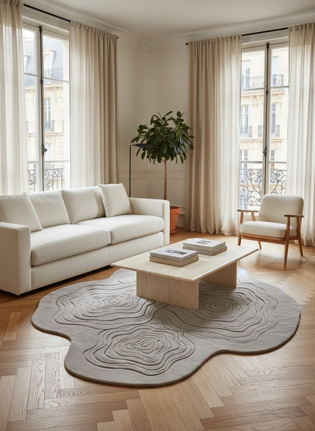 Cette création transforme l'atmosphère en ajoutant un souffle graphique discret, capable d'affirmer une pièce sans la dominer. Les variations de gris façonnent une lumière intérieure tempérée et adaptative, parfaite pour une chambre apaisée ou une entrée structurée. Pour découvrir d’autres créations graphiques et modernes, explorez également notre collection complète de tapis géométriques.