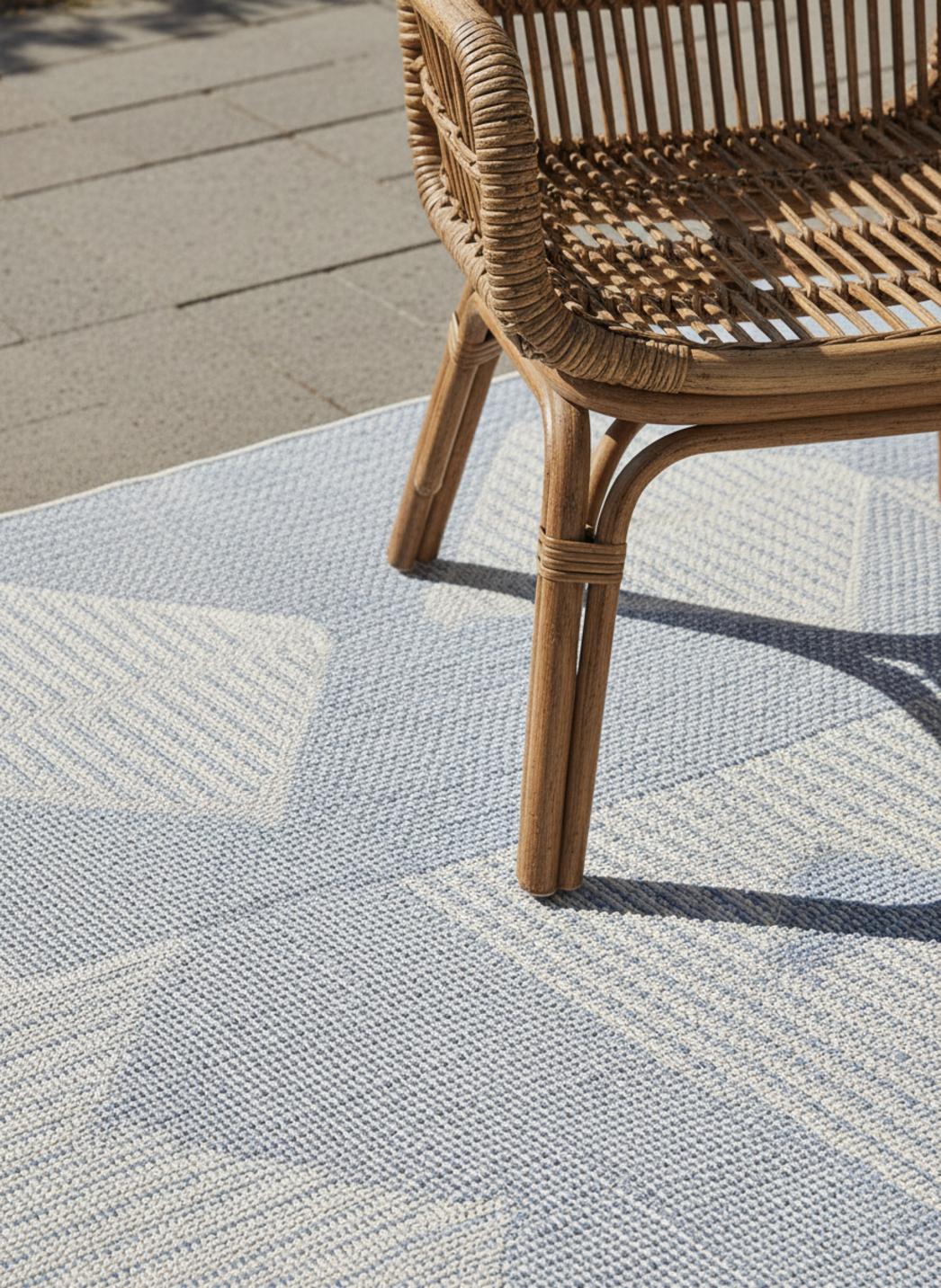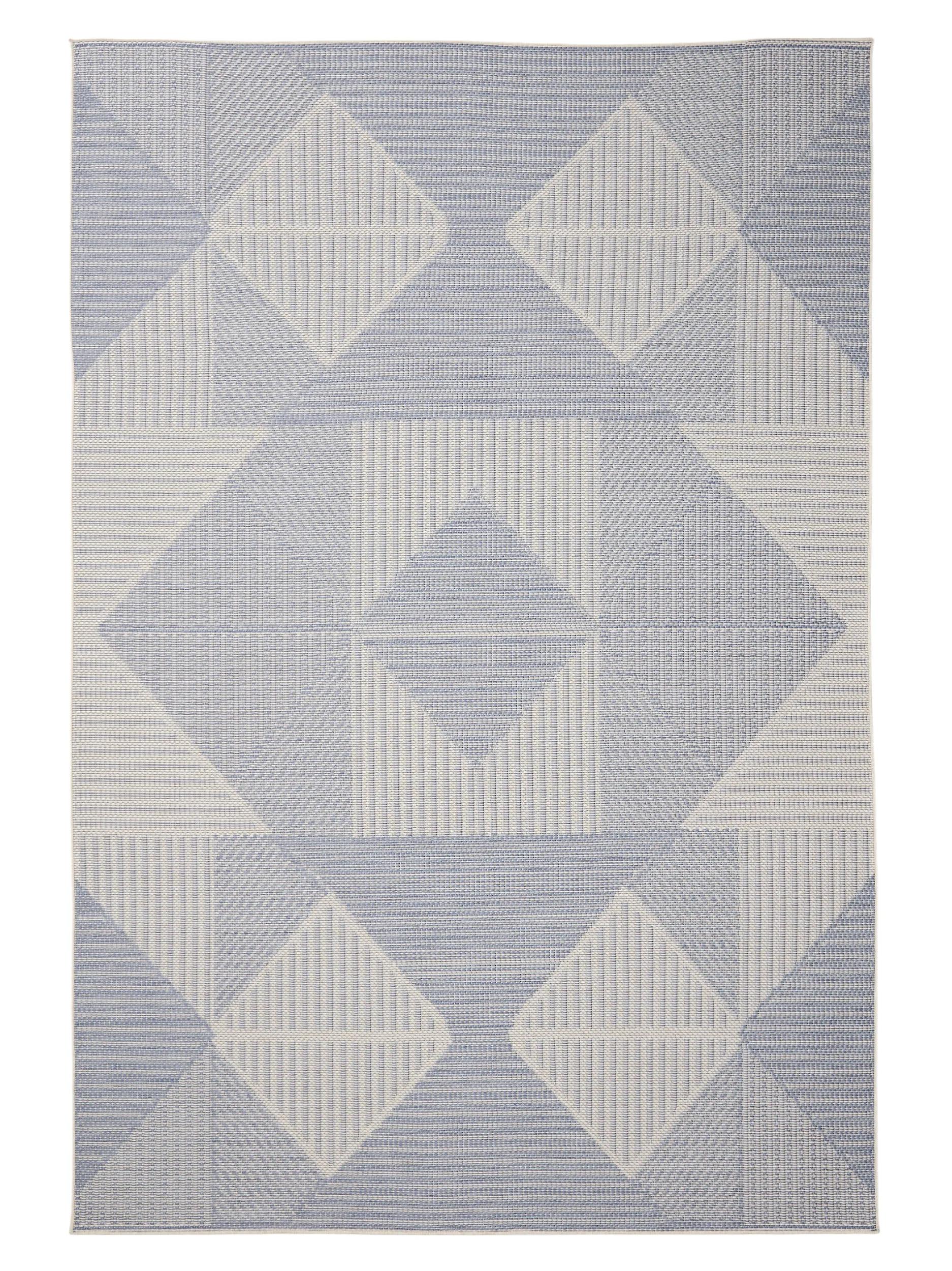 Tapis géométrique inspiration ethnique gris et bleu d'intérieur et d'extérieur 140x200 cm