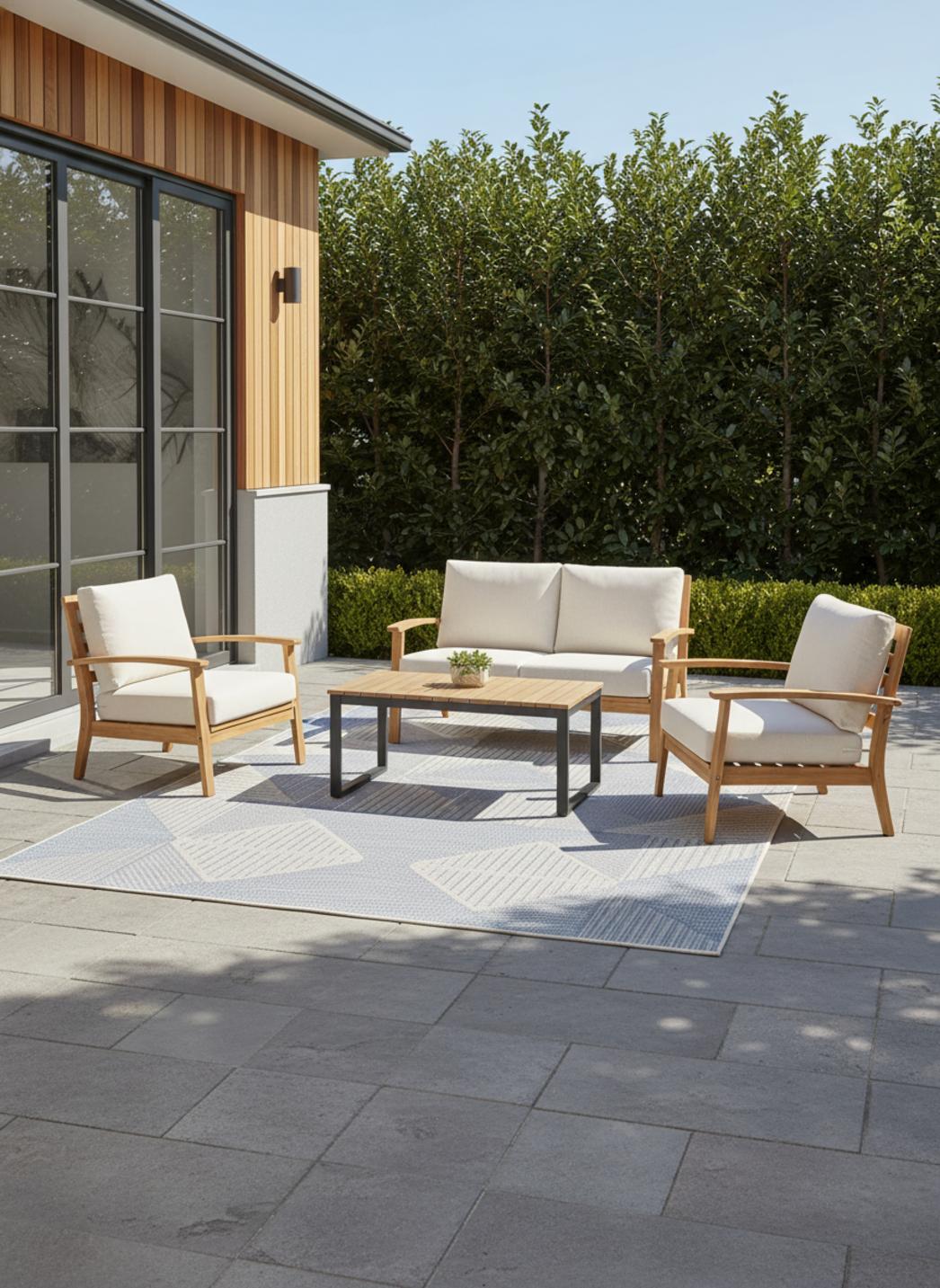 Alliance subtile entre modernité et héritage artisanal, ce tapis géométrique gris et bleu puise son caractère dans une inspiration ethnique pleine d’authenticité. Ses motifs structurés évoquent des trames anciennes revisitées avec une rigueur contemporaine, apportant rythme et profondeur à la décoration extérieure. Les nuances de gris apaisent l’ensemble, tandis que les touches de bleu insufflent une note de fraîcheur rappelant la mer et le ciel. Sur une terrasse, sous une pergola ou au bord d’un bassin, il installe une atmosphère calme et harmonieuse, propice à la détente. Son format de 140x200 cm s’adapte idéalement aux espaces de vie extérieurs comme aux zones de passage, apportant texture et équilibre visuel. Ce tapis d’intérieur et d’extérieur incarne une élégance naturelle, capable de relier le charme des motifs traditionnels à la simplicité du design moderne, pour une ambiance à la fois raffinée et chaleureuse.