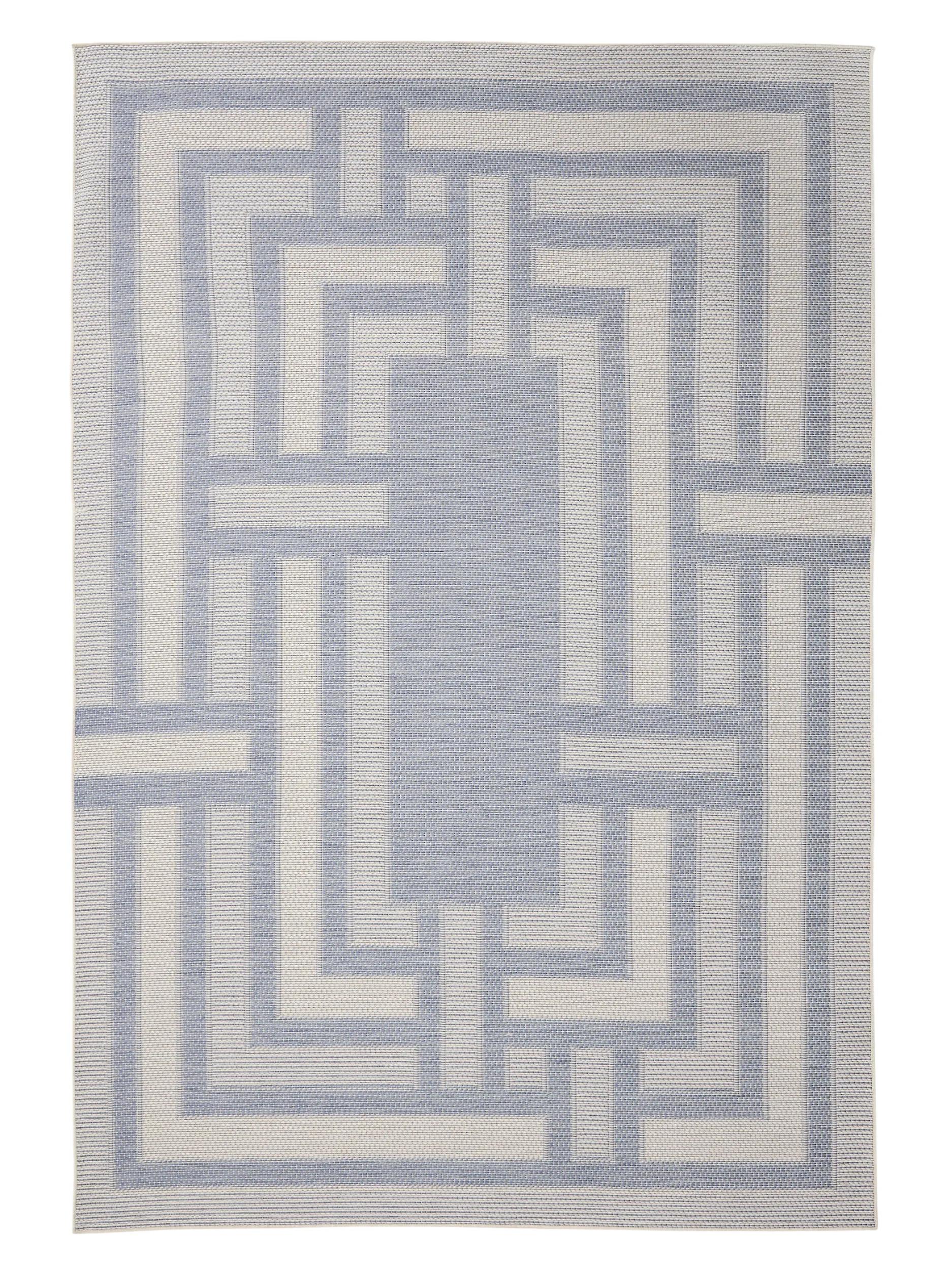 Tapis géométrique labyrinthe bleu et gris d'intérieur et d'extérieur 140x200 cm