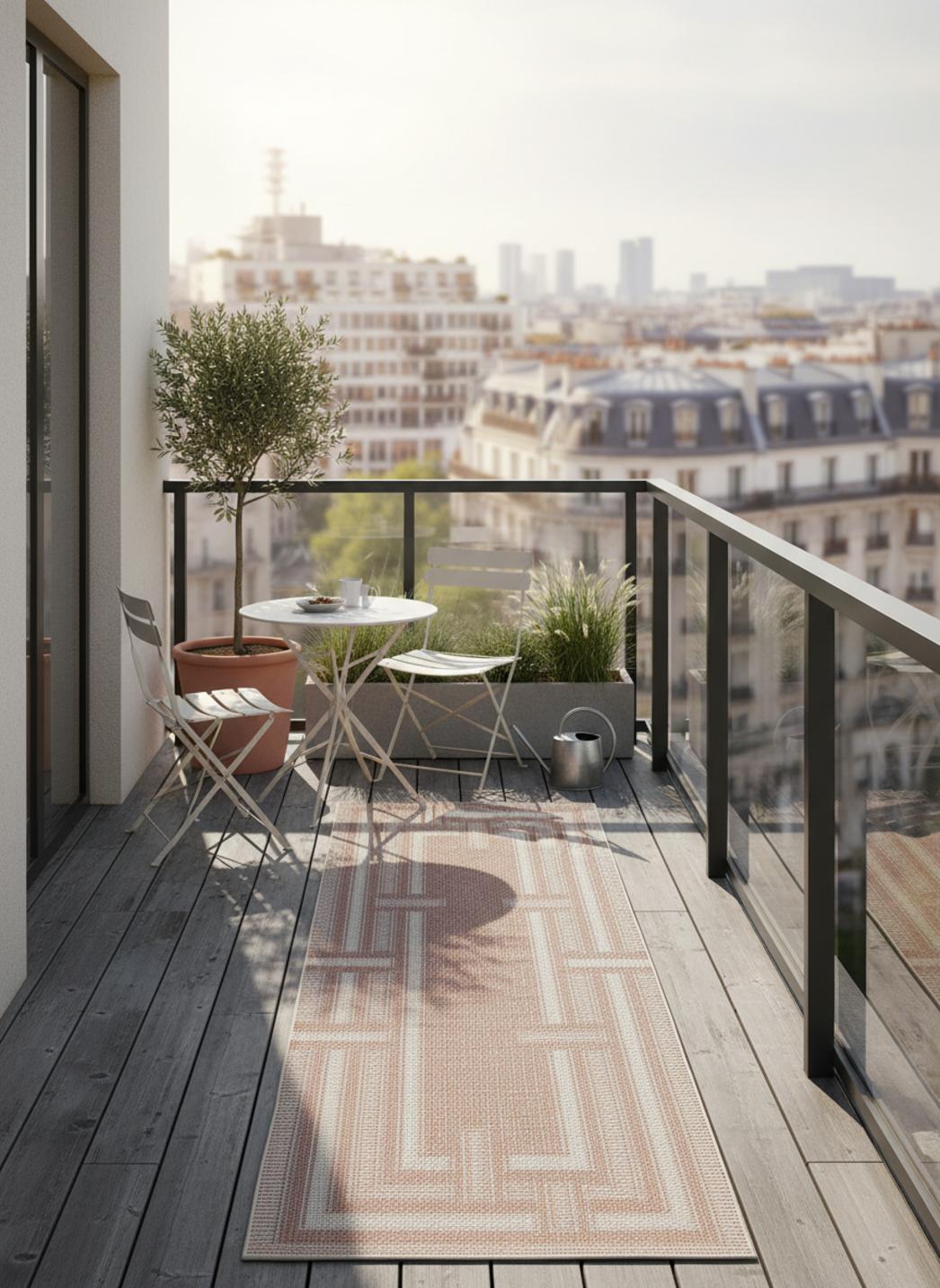 Dans un couloir lumineux ou sur un balcon ensoleillé, le tapis géométrique labyrinthe terracotta déploie une chaleur douce et contemporaine. Son motif entrelacé évoque les tracés d’un labyrinthe moderne, créant un rythme visuel à la fois structuré et fluide. La teinte terracotta, chaude et enveloppante, rappelle la profondeur des terres cuites et diffuse une lumière réconfortante, idéale pour sublimer les espaces de passage. En format 80x250 cm, il accompagne le regard et le mouvement avec élégance, reliant les volumes dans une continuité harmonieuse. Ce modèle s’inscrit dans l’esprit naturel de la collection de tapis d’extérieur, où les couleurs minérales et les textures sobres s’unissent pour créer des décors apaisants. Sa surface tissée révèle un relief discret qui joue avec la lumière et enrichit la matière. On retrouve cette même chaleur équilibrée dans la sélection de tapis de balcon, parfaite pour habiller les espaces étroits d’une note solaire et élégante. Un tapis qui guide le pas avec douceur et enveloppe le lieu d’une atmosphère lumineuse et naturelle.