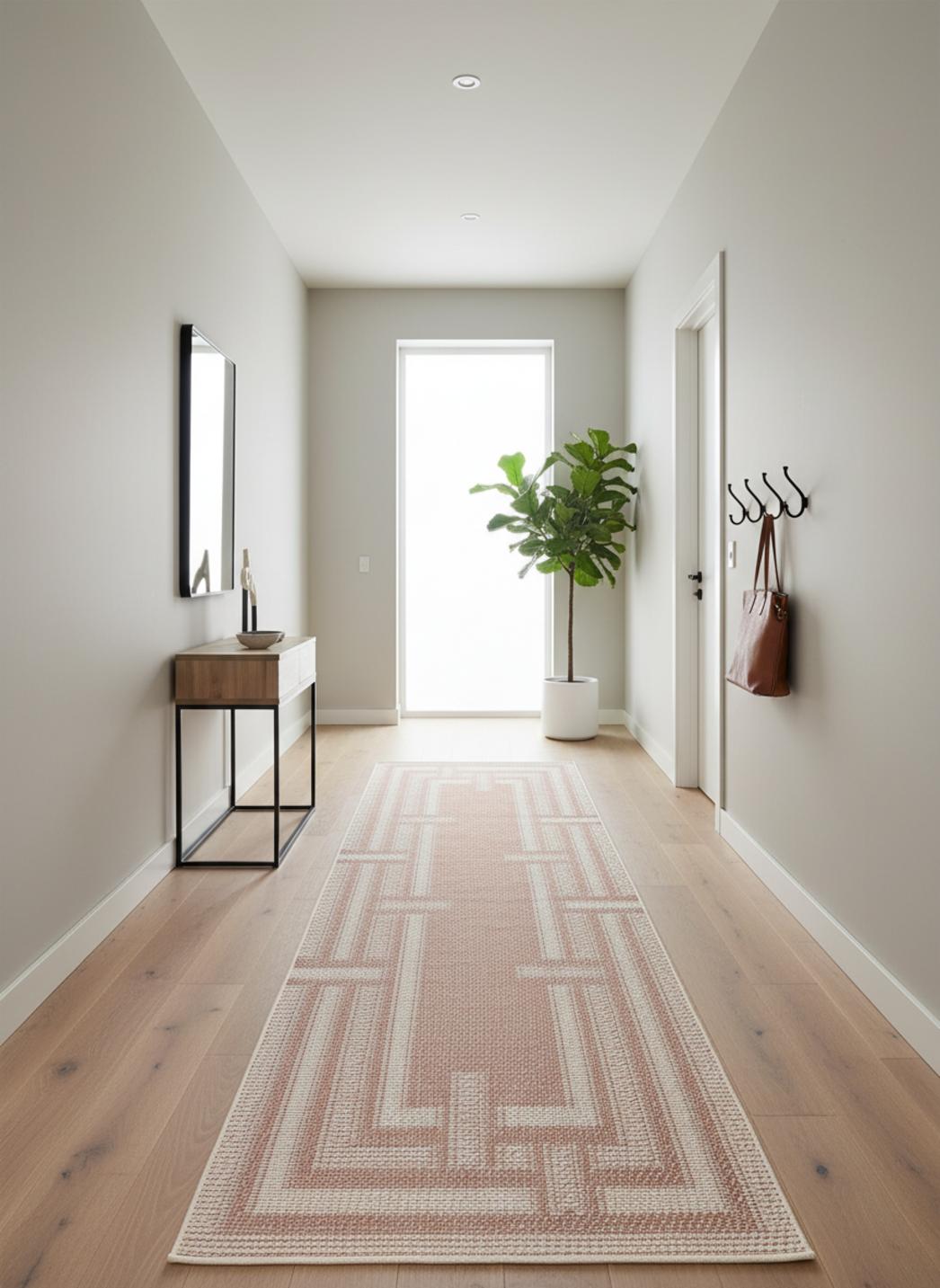 Tapis géométrique labyrinthe de couloir terracotta d'intérieur et d'extérieur 80x250 cm