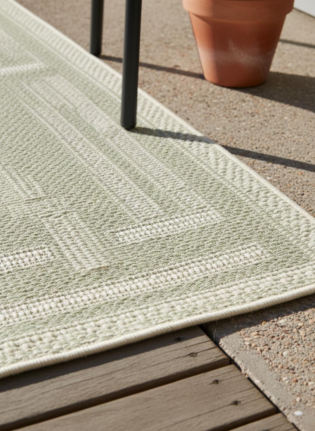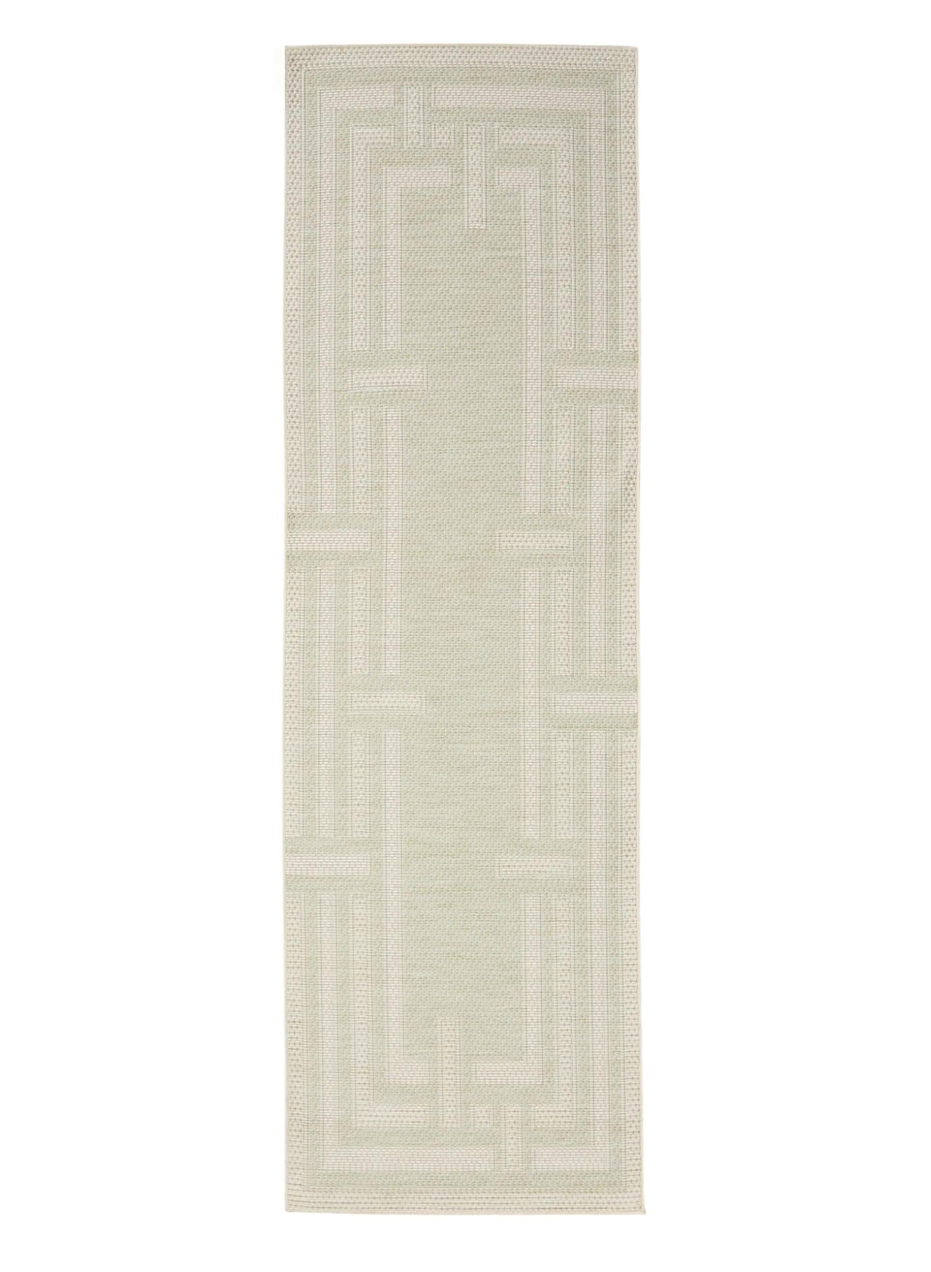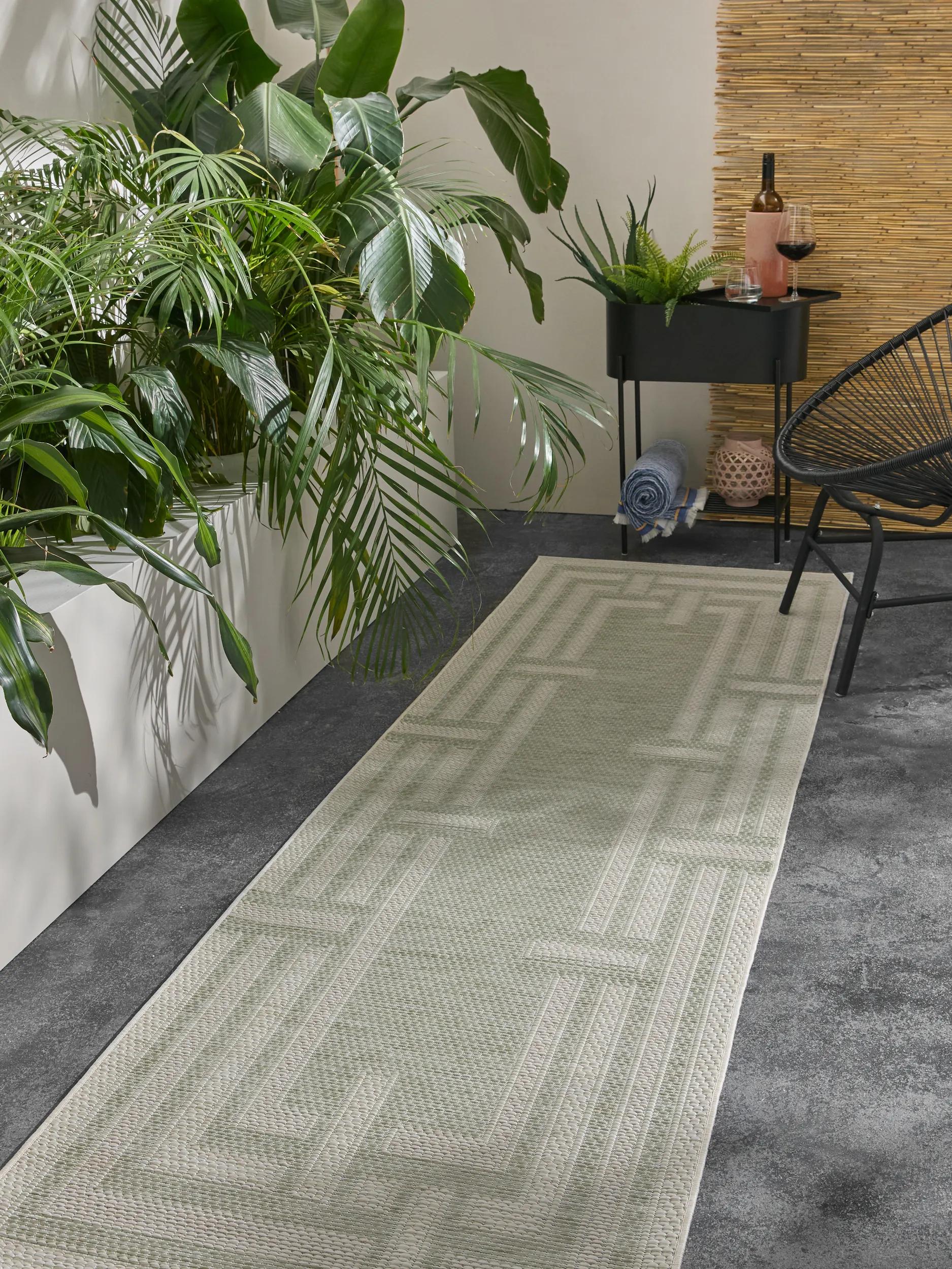 Tapis géométrique labyrinthe de couloir vert et gris d'intérieur et d'extérieur 80x250 cm