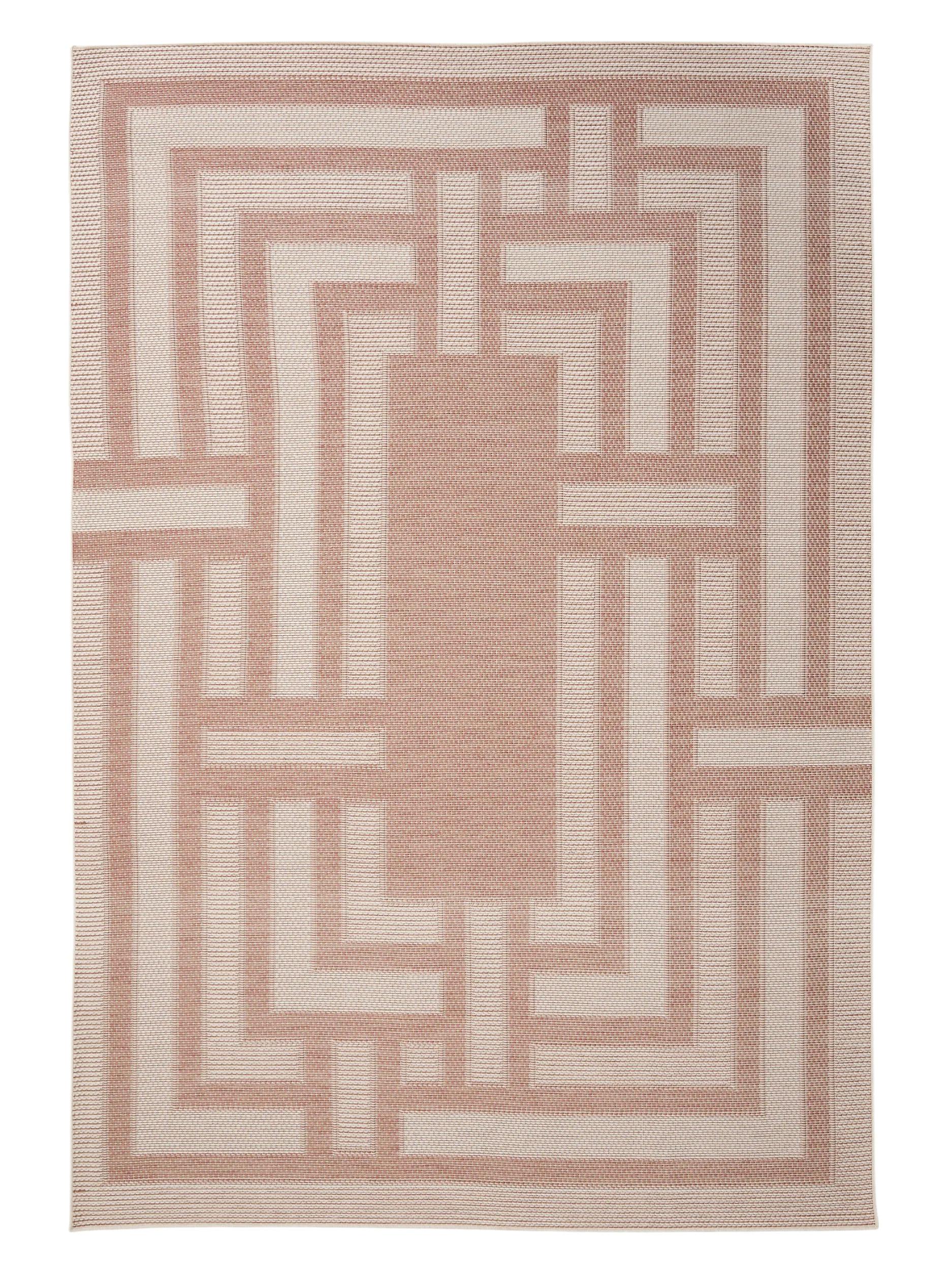 Tapis géométrique labyrinthe terracotta d'intérieur et d'extérieur 200x290 cm