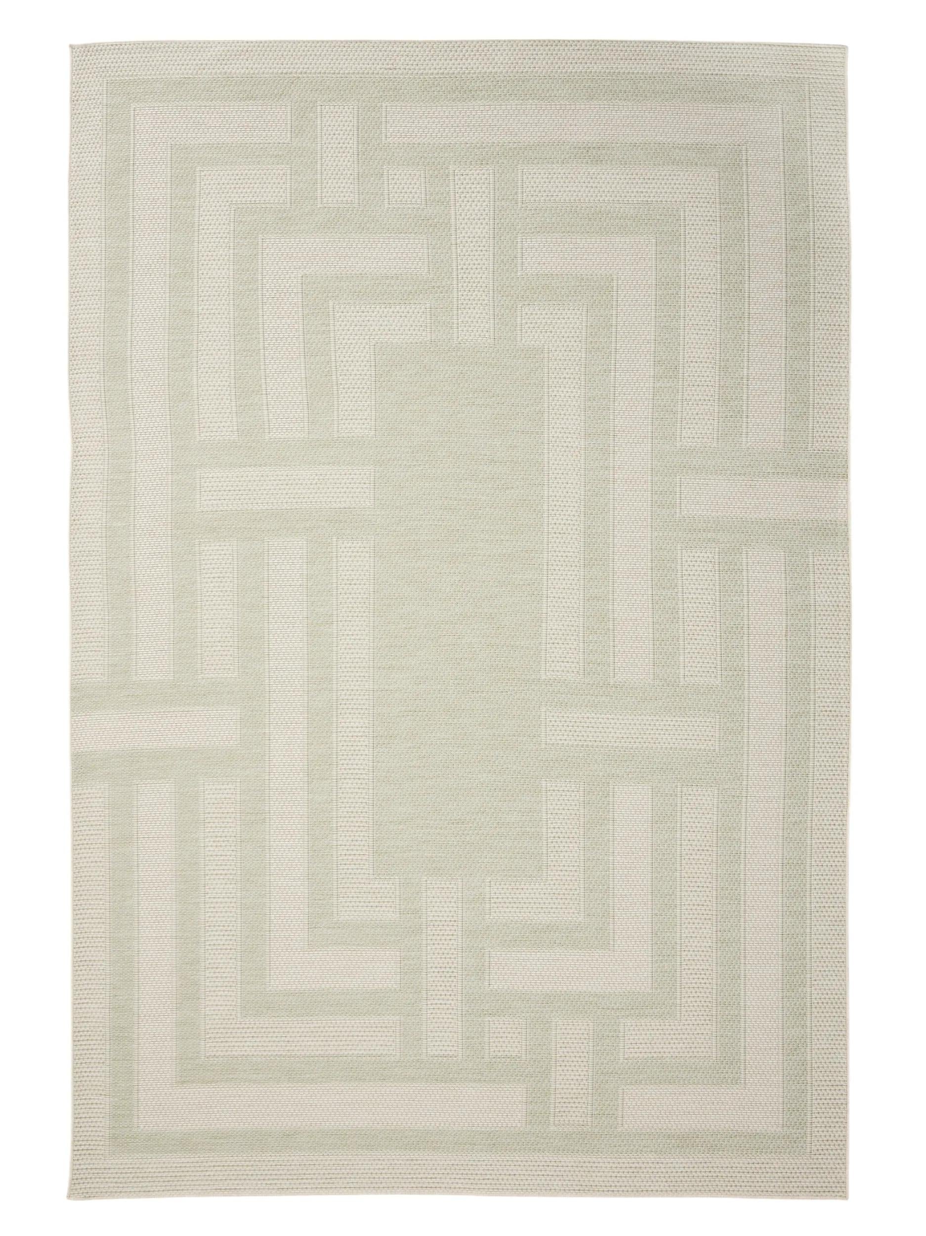 Tapis géométrique labyrinthe vert et gris d'intérieur et d'extérieur 120x170 cm